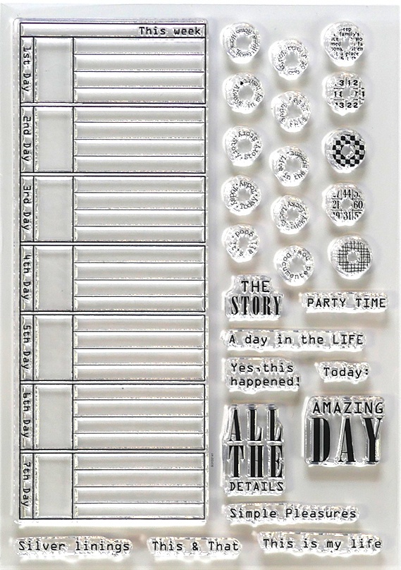 Add some fun to your planner with these clear stamps from Elizabeth Craft Designs. Designs included are decorative circles with a hole in the middle, this week at a glance, phrases such as party time, amazing day, simple pleasures, silver linings, all the details, this is my life, and more. These stamps are to be used with an acrylic block (sold separately). Imported.
