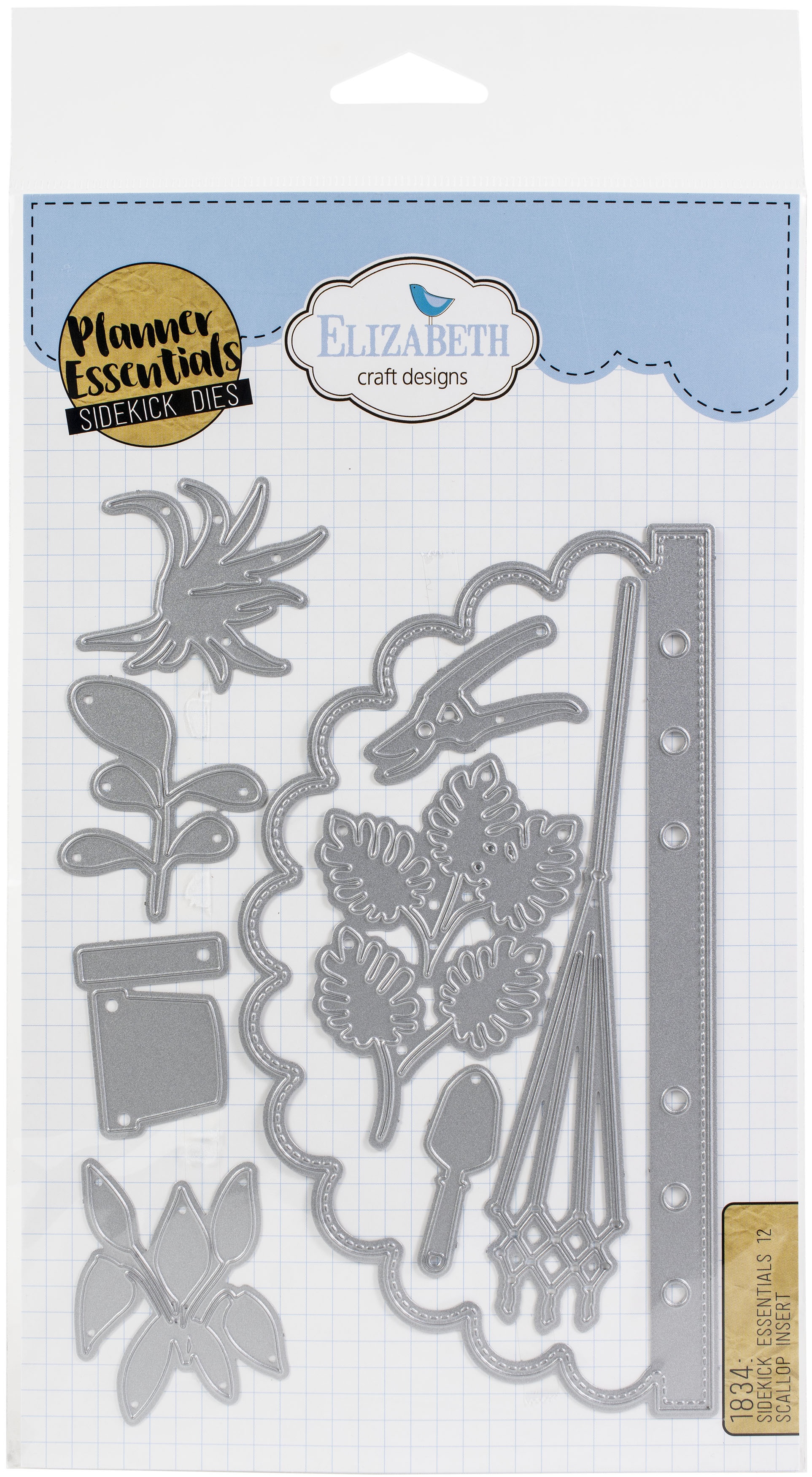 Spice up your next project with this die set. This package contains Sidekick Essentials 12: a set of 9 metal dies, page die size 3.6x6.7 inches. This die set fits personal sized planners only. WARNING: Choking Hazard. Not suitable for children under 3 years. WARNING: May contain items with sharp edges. Handle with care. Imported.