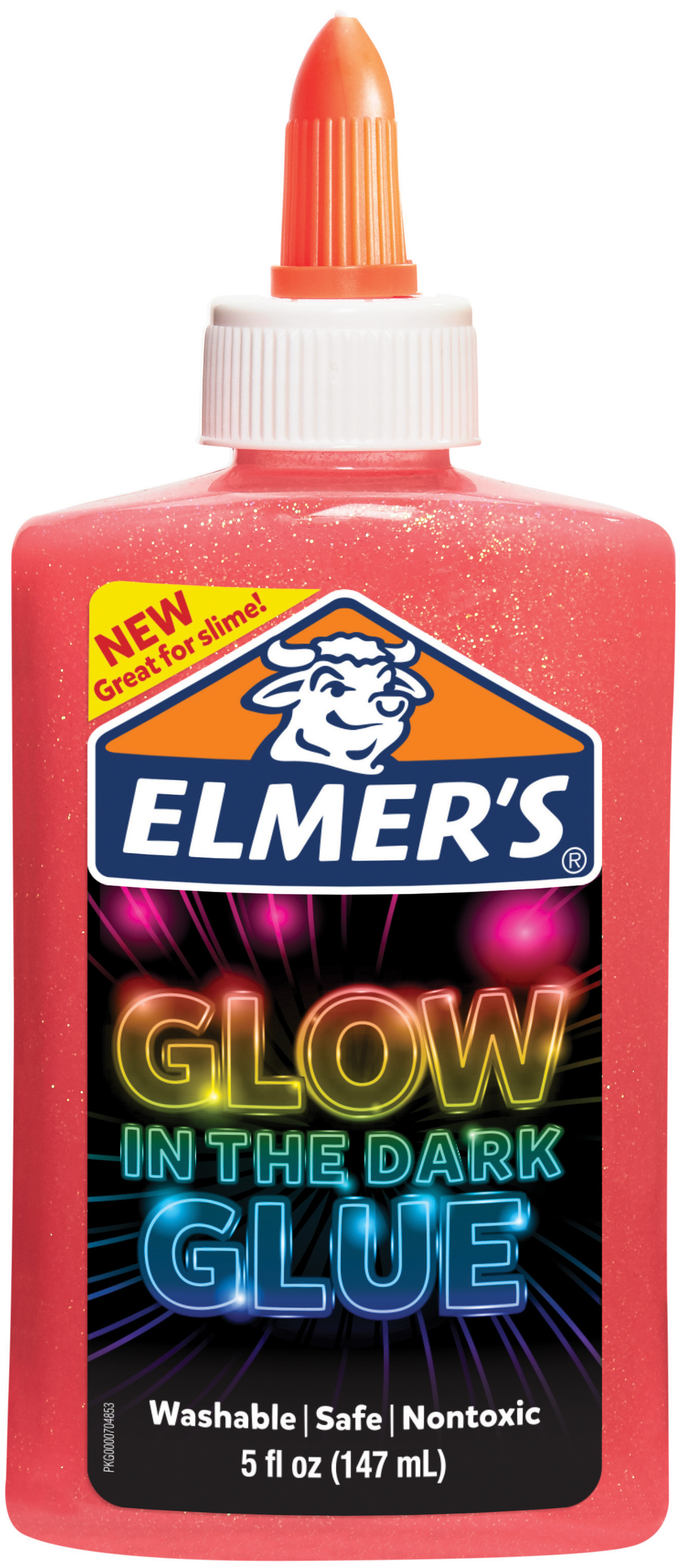 Elmer's Glow in the Dark Glue is specially formulated washable glue in luminous neon colors ideal for all arts and crafts, including decorating, painting, gluing and even slime! This easy-to-use glow glue allows for endless creativity. This package contains 5oz of glow in the dark liquid glue. Non-toxic. Conforms to ASTM D 4236. WARNING: Choking Hazard- small parts. Not for children under 3 years. Comes in a variety of colors. Each sold separately. Imported.