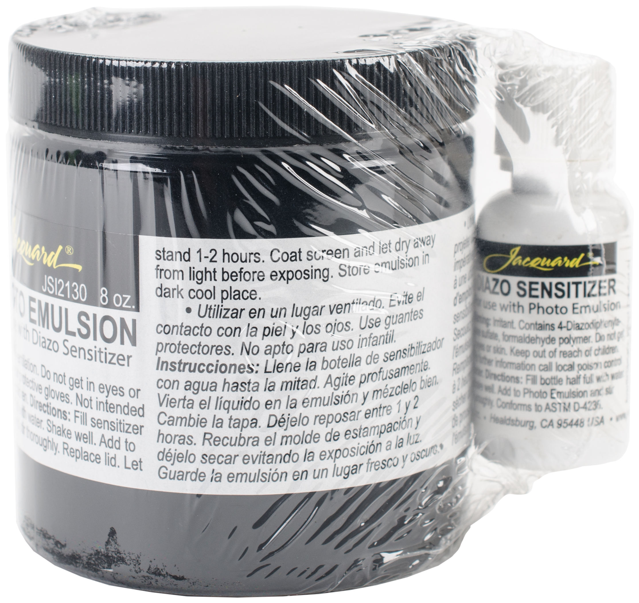 Create crisp, detailed silk screens for screen printing on t-shirts and paper. Photo Emulsion is used with the Diazo Sensitizer to coat silk screens for photo imaging. Contains one 8 ounce jar of photo emulsion and one bottle of sensitizer. Keep out of reach of children. Conforms to ASTM D4236. Imported.