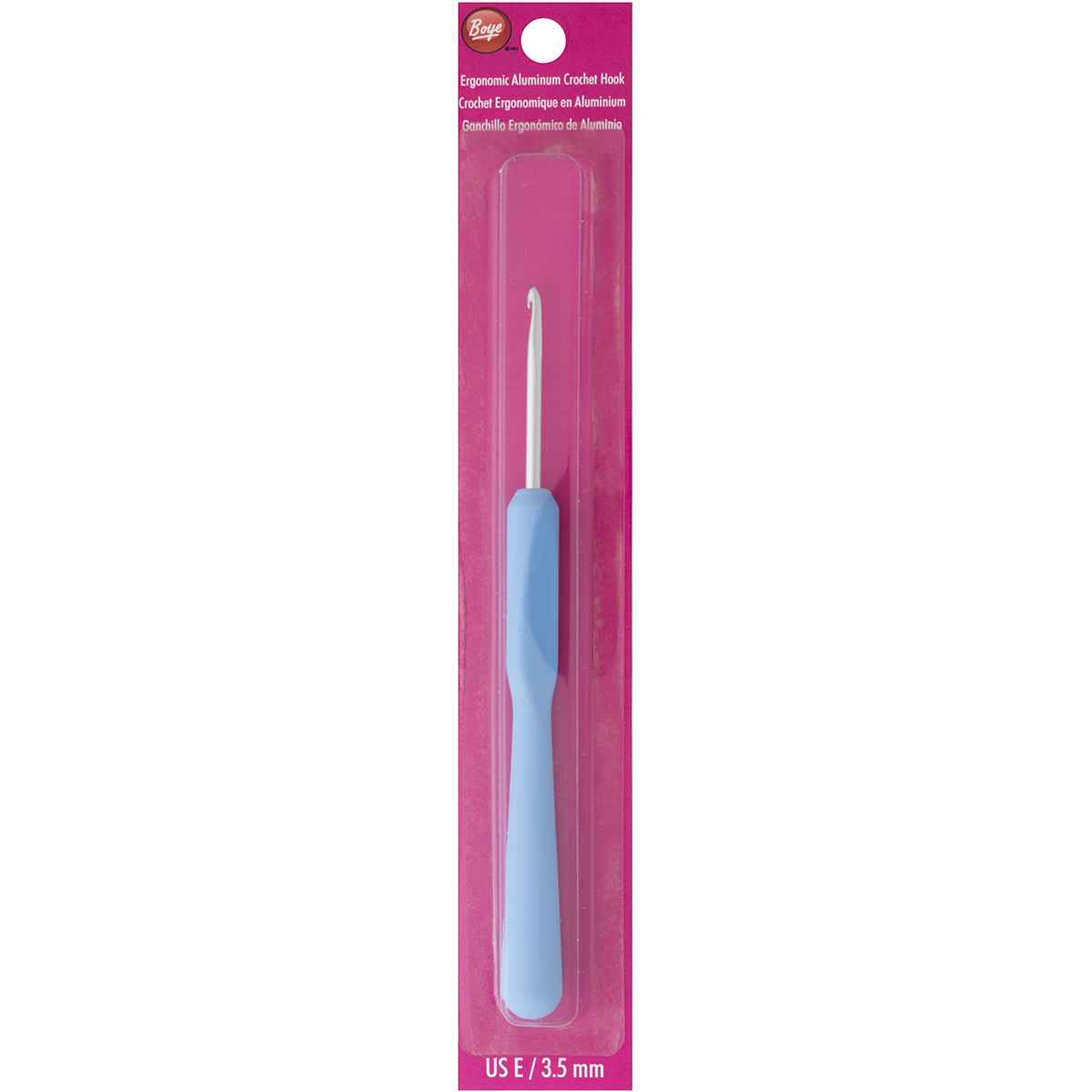 Boye-Ergonomic Aluminum Crochet Hooks. Crochet hooks designed especially for crocheters who have carpel tunnel, Arthritis or metal allergies. This package contains one aluminum crochet hook with a comfortable grip. Comes in a variety of sizes. Each sold separately. Imported.