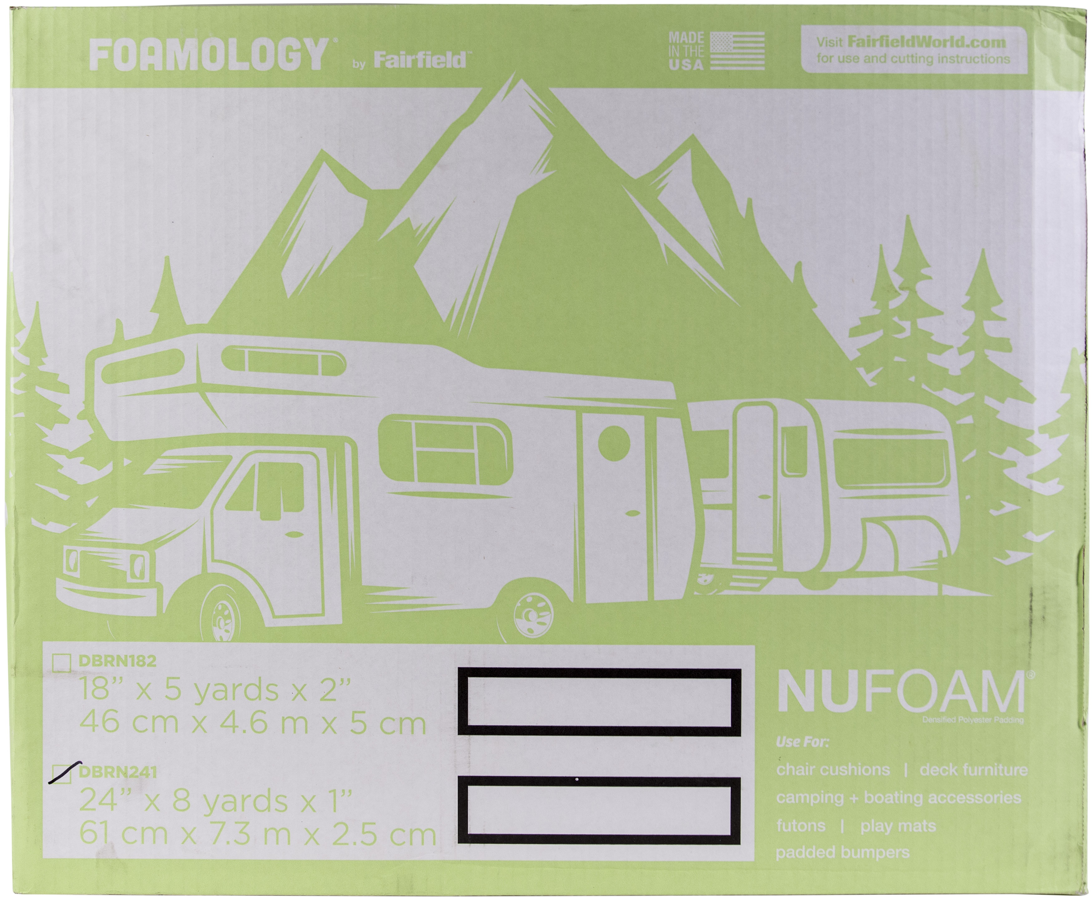 Poly-Fil NuFoam is a safe alternative to conventional foam that is made from densified polyester batting. It is mildew resistant, and won't yellow or disintegrate. It's perfect for chair cushions, deck furniture, camping, futons, crib bumpers, playpen mats, recreational vehicle accessories and more. Made from compressed layers of 100% polyester that range from 1" to 4" thick. NuFoam works best for occasional seating as it will compress over time. We recommend using NuFoam that is 1" thicker than your intended cushion to allow for compression. It will be a snug fit inside the cover. Resists mildew Non-allergenic. Unconditionally guaranteed. Care: Hand wash, air dry. Packaging graphics subject to change