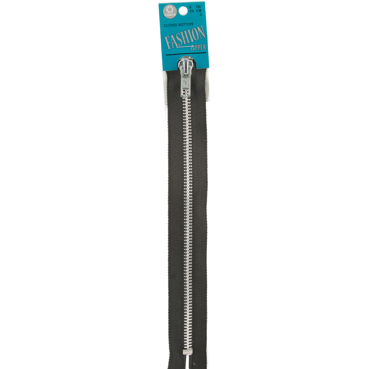 Coats and Clark-Fashion Zipper: 9 inch. This package includes one closed bottom fashion silver zipper. Perfect for purses, clothing and embellishment. Available in a variety of colors: each sold separately. Made in USA.