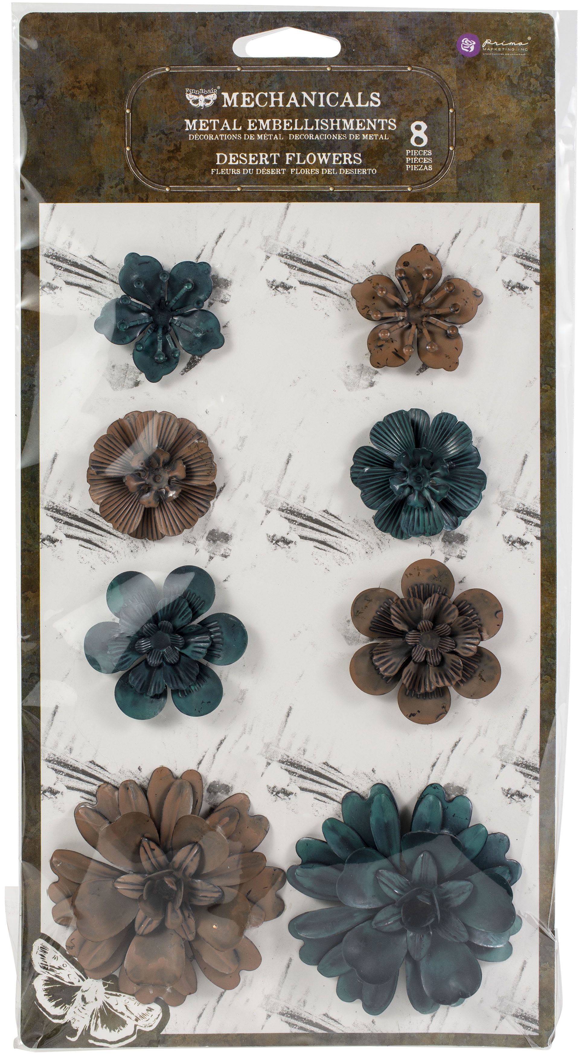 Finnabair Mechanicals Metal Embellishments Desert Flowers, 8/Pkg