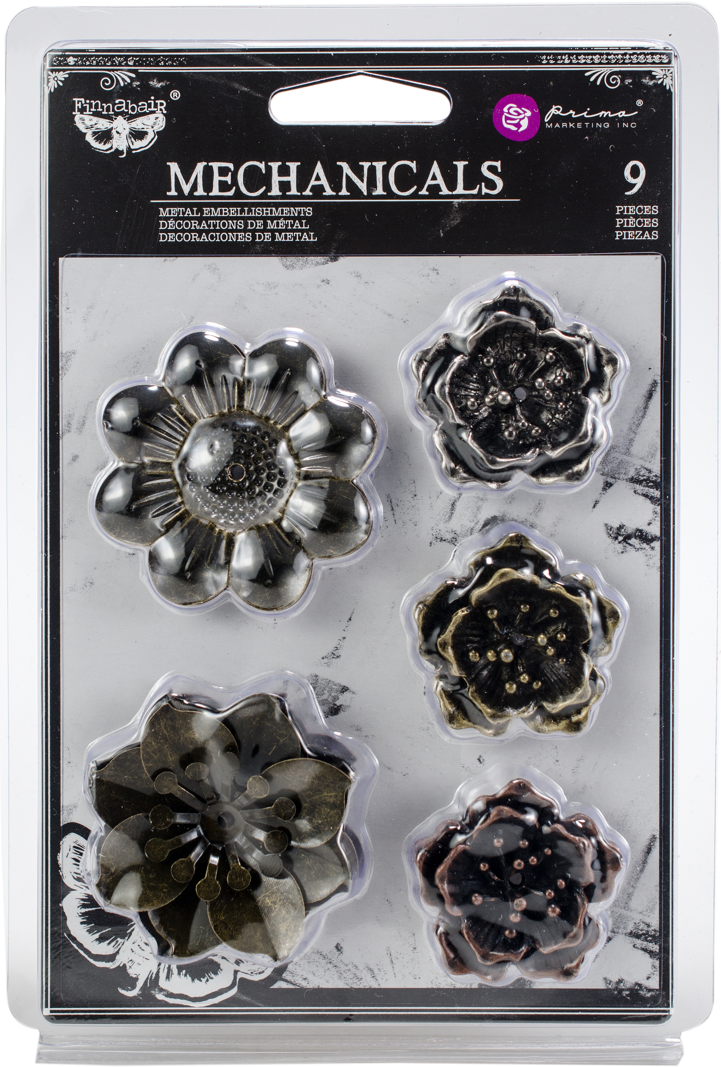 Finnabair Mechanicals Metal Embellishments Flowers, 1.5" - 2" 9/Pkg
