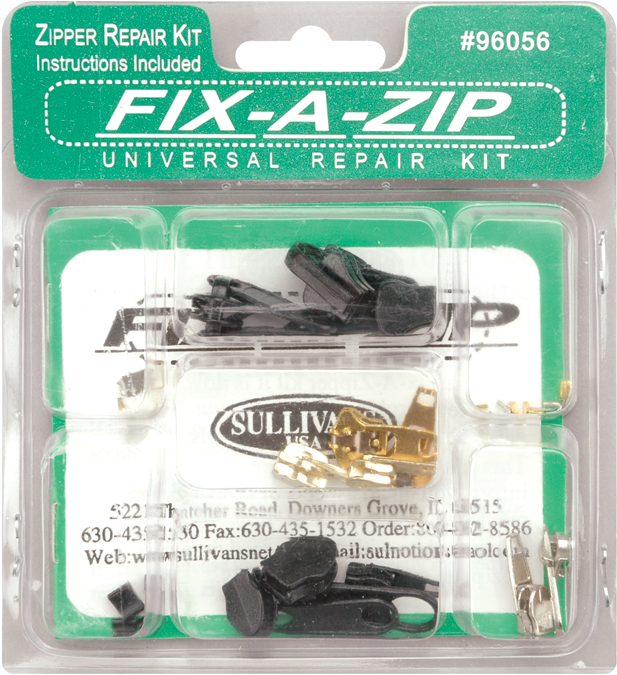 SULLIVANS-Fix-A-Zip: Zipper Repair Kit. Repair your zippers without having to replace them! Package includes: assorted zippers and instruction booklet.