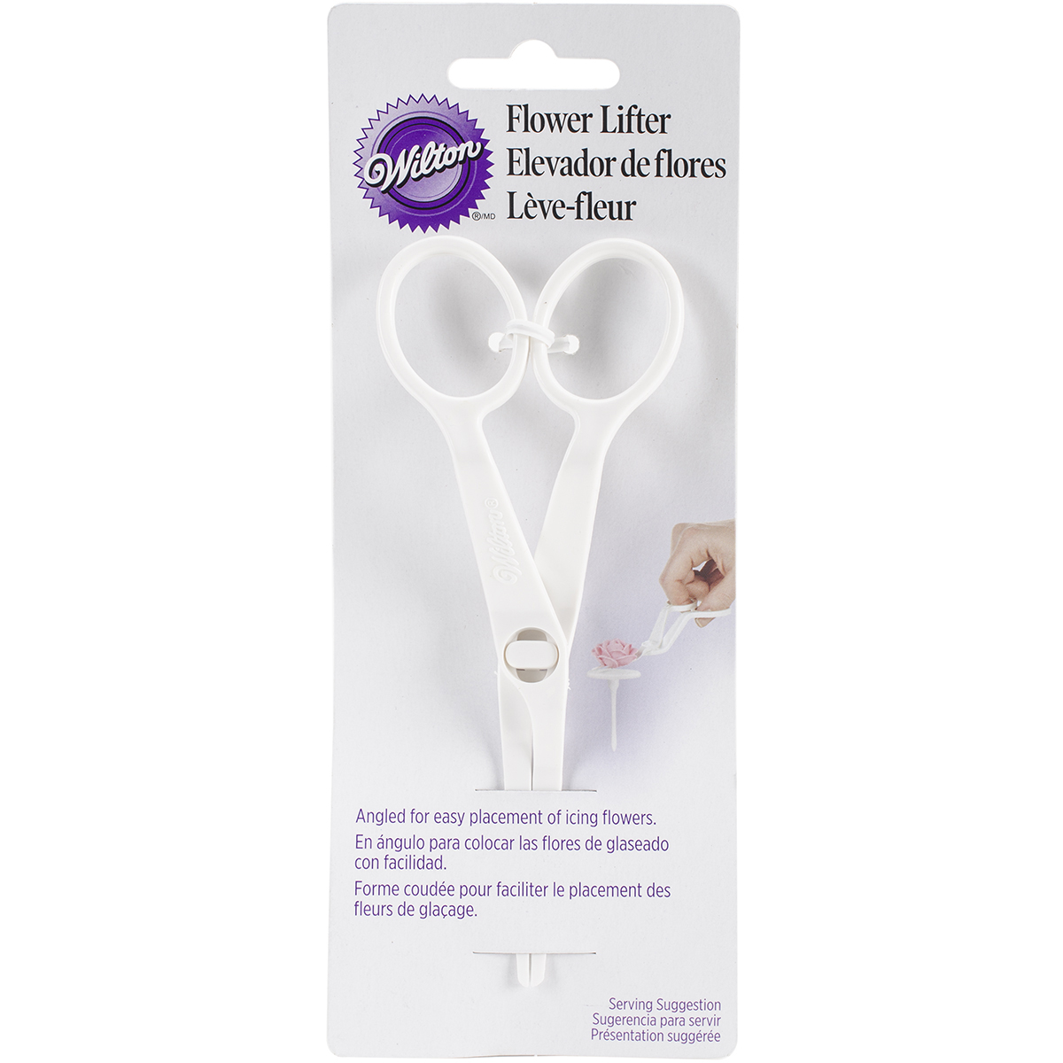 WILTON-An ideal tool for positioning buttercream flowers directly on iced cakes. Angled design helps you get under flowers completely without damaging the flowers or the iced cake. Perfect for placing icing roses, mums, carnations, bachelor buttons, and other flowers which have a base. Color: white.