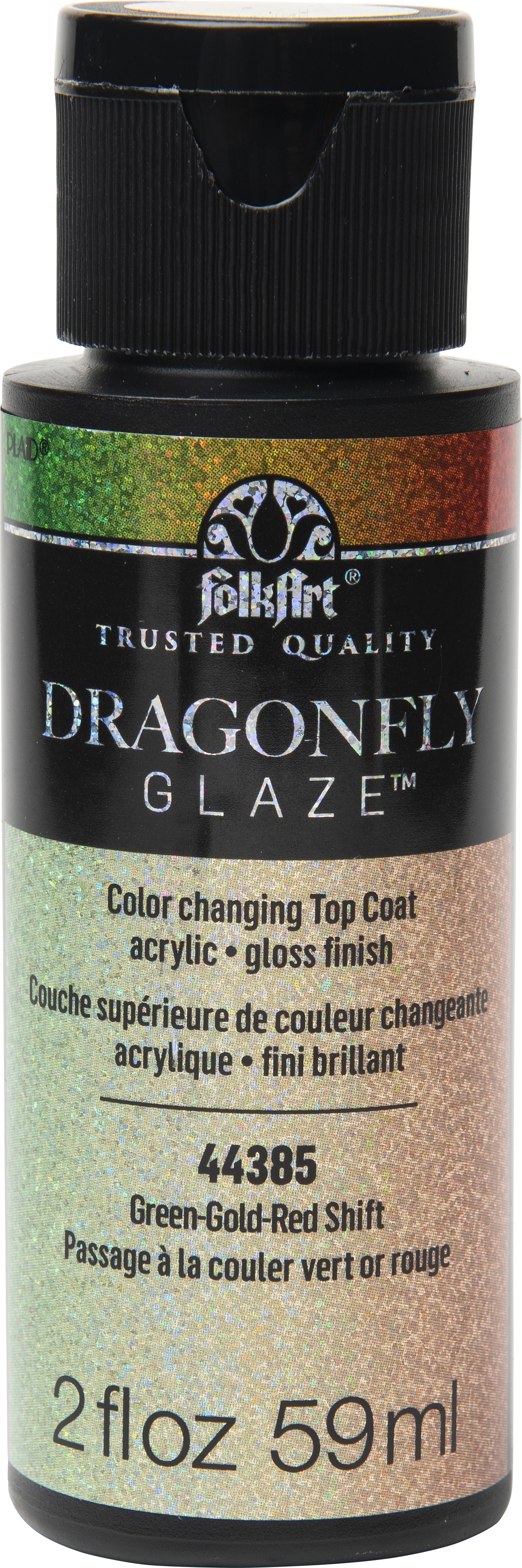 Folkart Dragonfly Glaze Topcoat 2.5oz Green, Gold, Red Shift