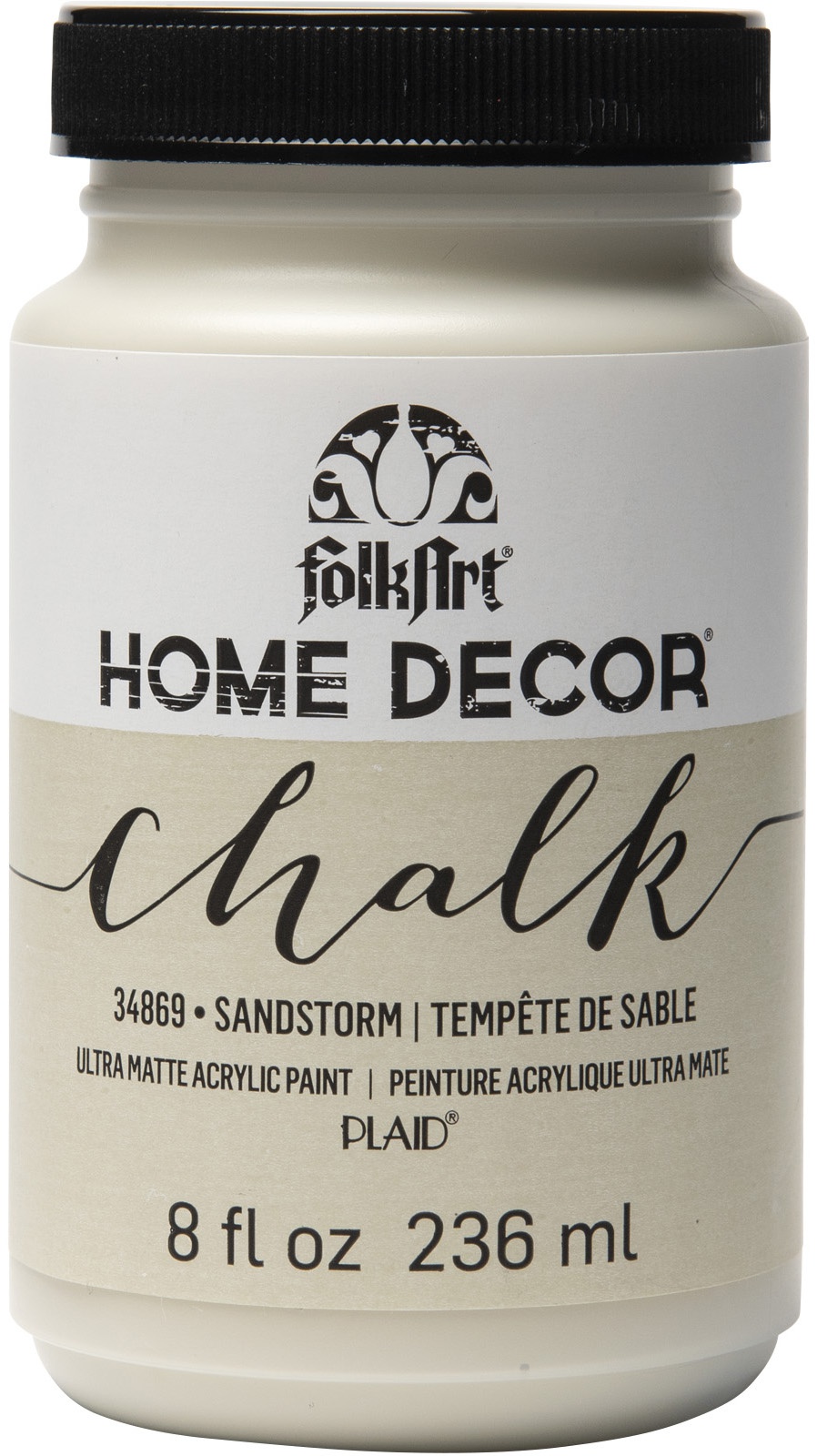 Plaid:Craft-FolkArt Home Decor Chalk Paint. Restore your decor with an ultra matte chalk finish! Requires minimum surface prep and is easy to distress. Great for furniture, cabinets, walls, decorative glass, metal and more! This package contains one 8oz bottle of home decor chalk paint. Comes in a variety of colors. Each sold separately. For indoor use only. Non-toxic. Conforms to ASTM D 4236. Made in USA.