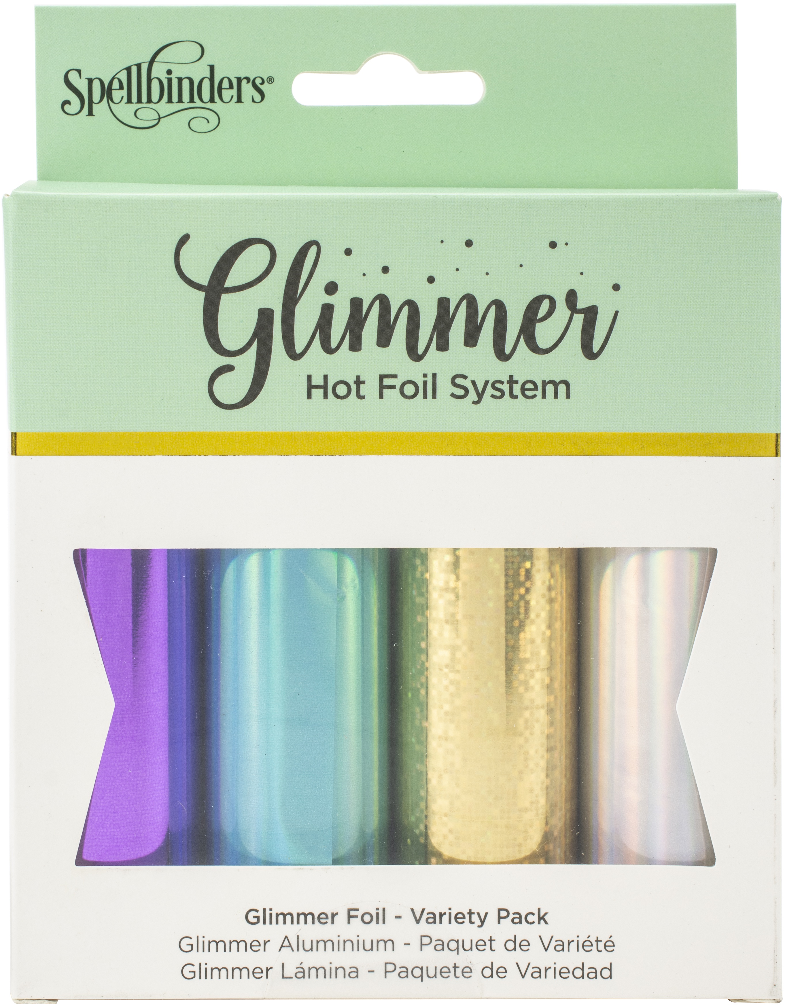 Heat-activated foil for use with the Glimmer Hot Foil System or other hot foil stamping products (sold separately). This package contains four 15 foot rolls of 5 inch wide heat activated foil in assorted colors. Imported.