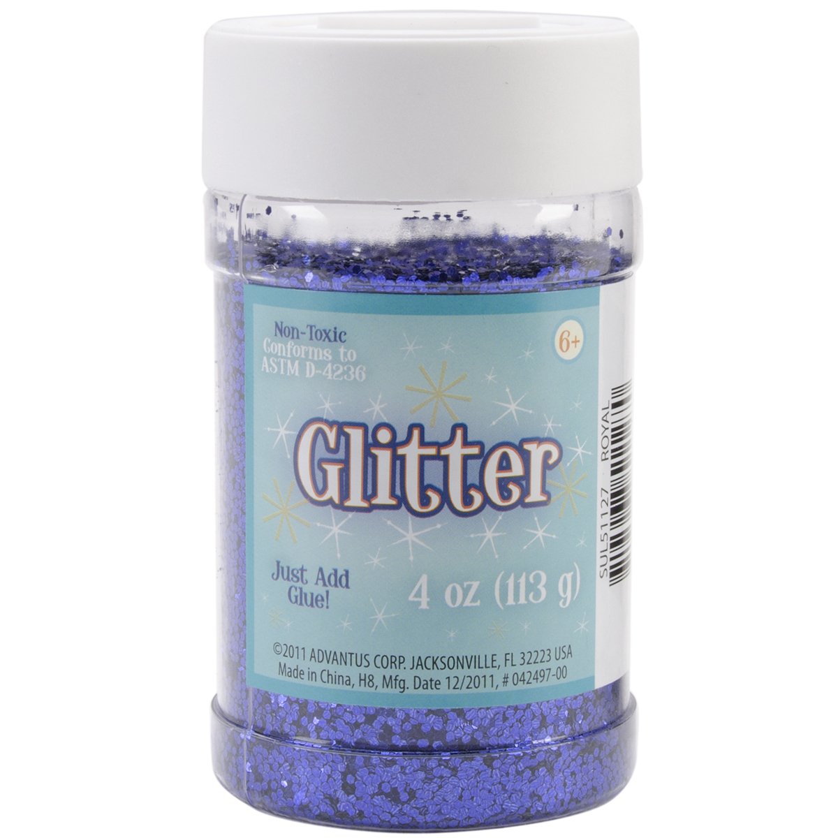 ADVANTUS-Glitter. Adding glitter to projects is easy-- just add glue or other adhesive and sprinkle the glitter over top! This package contains 4 ounces of glitter in a plastic bottle with a convenient shaker top. Available in a variety of colors (each sold separately). Conforms to ASTM D4236. Imported.