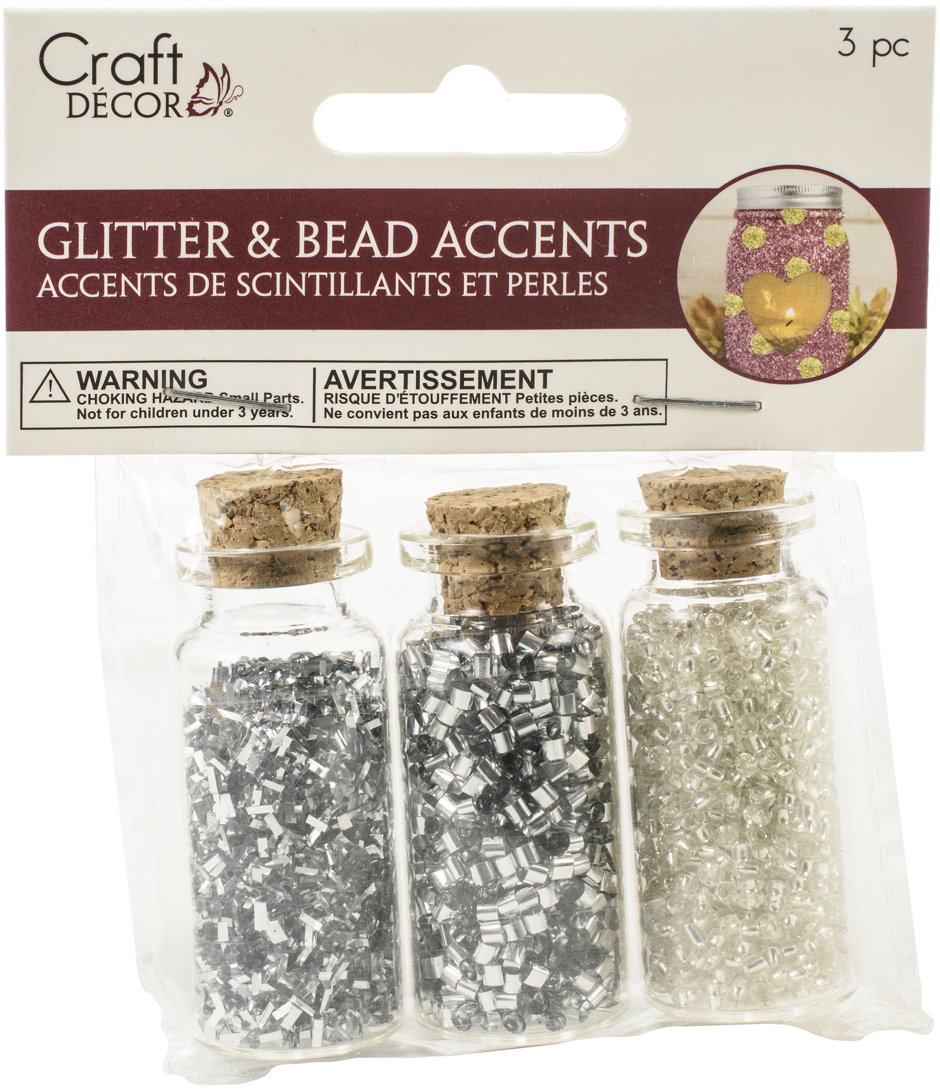 Glitter & Seed Bead Accent Vials 3/Pkg Silver