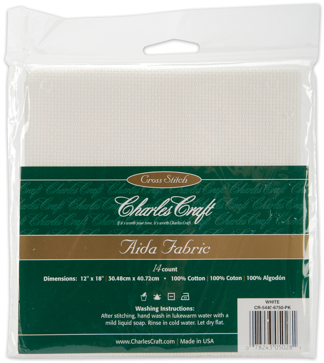CHARLES CRAFT-Gold Standard Cross Stitch Fabric: White. This heavy weight Aida fabric was made from 100% cotton yard produce specifically for Aida cloth and is 33% heavier than most: making it stiff enough to work without the use of a hoop under most circumstances! This 14 count Aida comes in a variety of colors, measures 12x18in (30.5x45.7cm). Care: after stitching hand wash in lukewarm water with a mild liquid soap, rinse in cold water and dry flat. Made in USA.