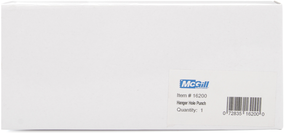 MCGILLS-Hanger Hole Punch. How many times have you had to punch holes in product packaging? This punch is a great solution for store owners regardless of the types of products you sell! Heavy- duty and easily punches through cardboard backings. This is also a great tool for home crafters! Maximize your storage space and options with this punch! Features comfort grip handles. Punch hole size: 5/16x1-1/16in. Punch measures 6-3/4x3-1/2x1-5/8in. Made in USA.