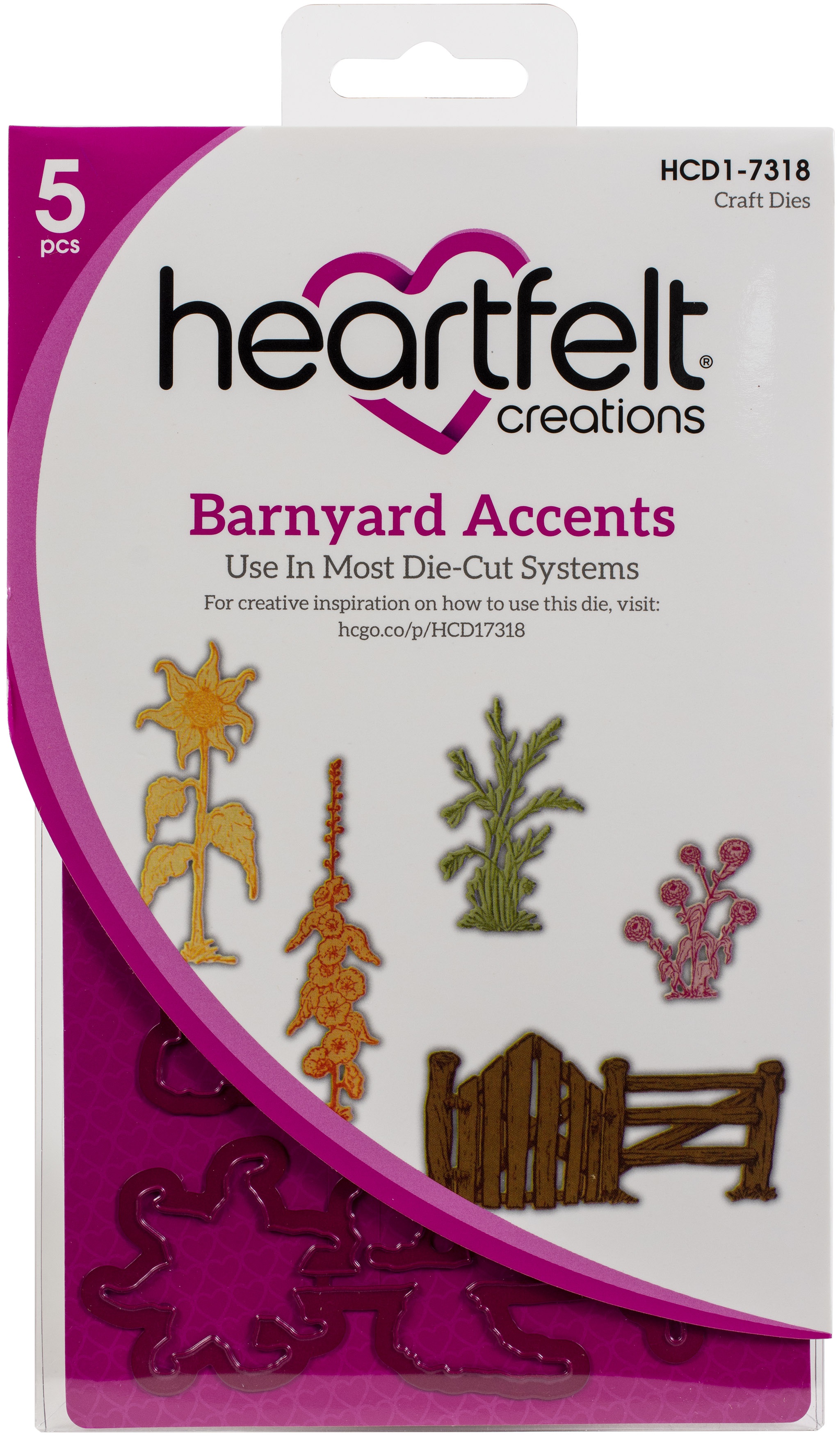 The Heartfelt Creations Cut & Emboss dies add dimension and a realistic feel to any paper crafting or mixed media project. Compatible with most die-cutting machines. This package contains Barnyard Accents: five dies measuring between 1.75x2 inches and 4.25x2.25 inches. Imported.