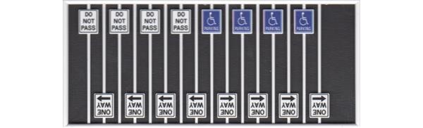 HO Misc Road Signs (4ea Do Not Pass, Handicap, One Way Left/Right)