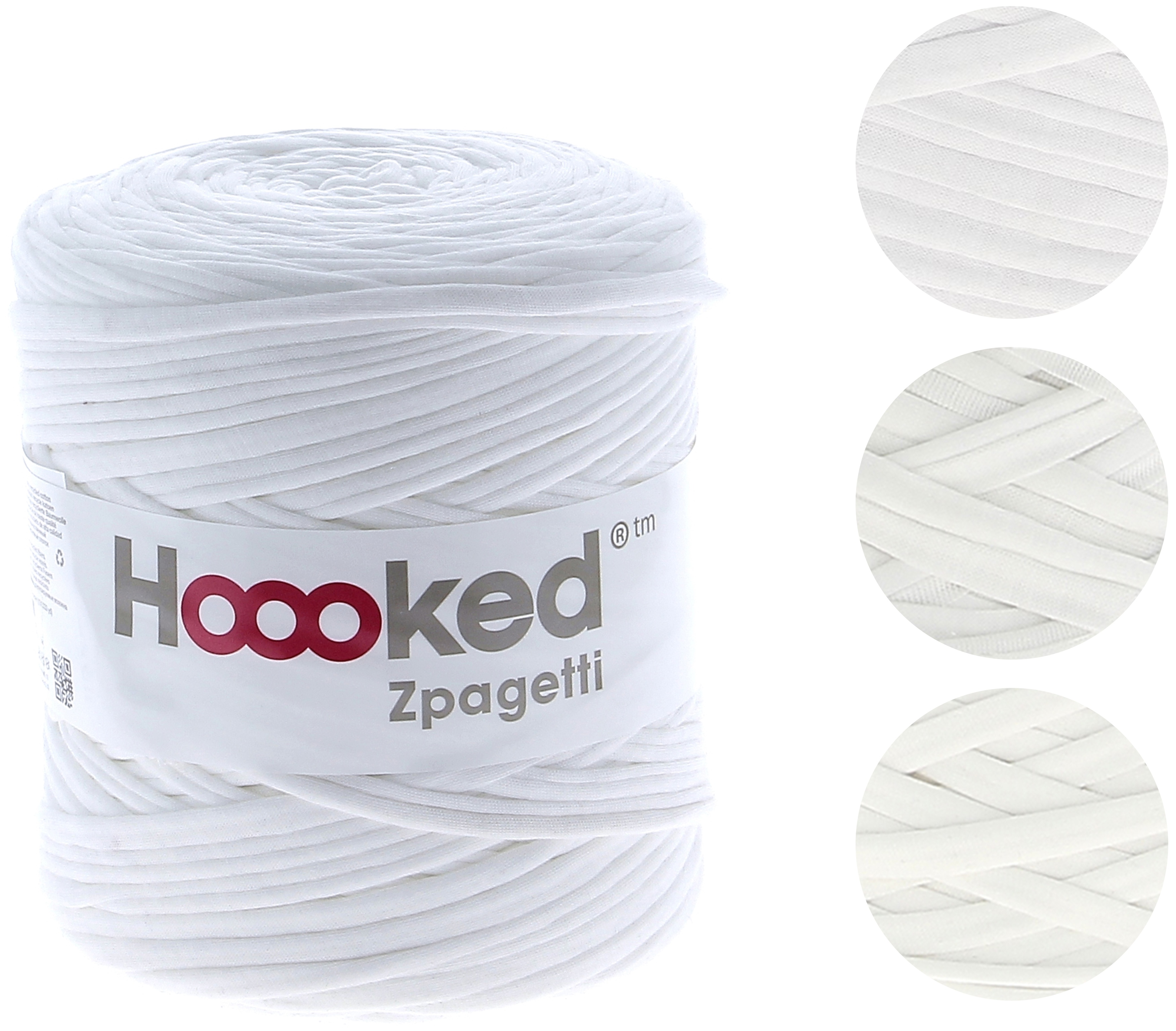 Hoooked-Zpagetti. The Original European T-shirt yarn, made from remnants of recycled European textiles. In a wink you will make your own cushion covers, poufs, bags, throws and baskets. This yarn is gorgeous to knit, crochet or macrame; just use your imagination. The color ways are forever changing and always up to the latest fashion trends. Be creative and try it today! Please note that due to the nature of this yarn, colors may vary within the same color group. Weight category: 7. Content: 90% cotton, 10% other recycled fibers. Putup: 29.92oz/848gr, 131yd/119m. Suggested knitting needle size: US15. Suggested crochet hook size: P15. Care: machine wash, dry flat in shade. Comes in a variety of colors. Each sold separately. Imported.