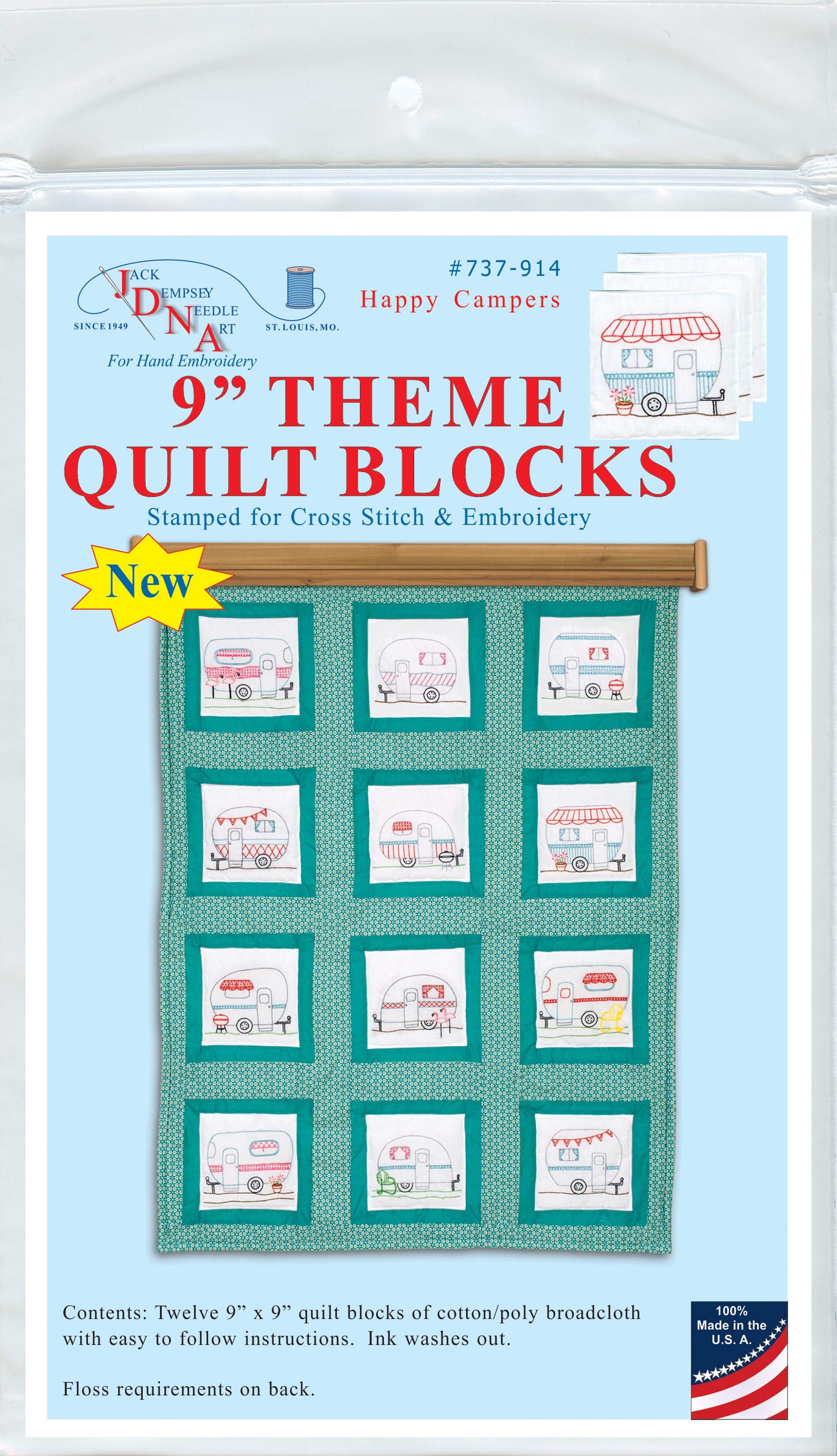 Jack Dempsey Stamped White Quilt Blocks 9"X9" 12/Pkg Campers