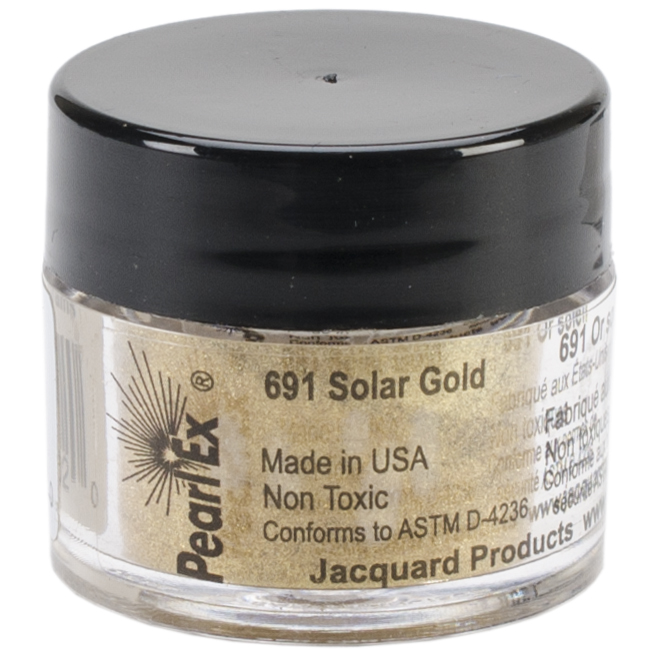 JACQUARD-Pearl EX Powdered Pigments: 3 gram jar. These can be mixed into any media and applied to any surface! And the variety of finishes Pearl Ex can produce is nearly endless: from metallic sheens to pearlescent shimmers to all manner of faux finishes. Mix into oil, acrylic, gouache, varnish, clay, melted wax, and apply to clay, glass, metal, wood, paper, and fabric. Conforms to ASTM D4236. Package: clear plastic jar with black lid, 1-1/4in.x1-3/8in. Made in USA.