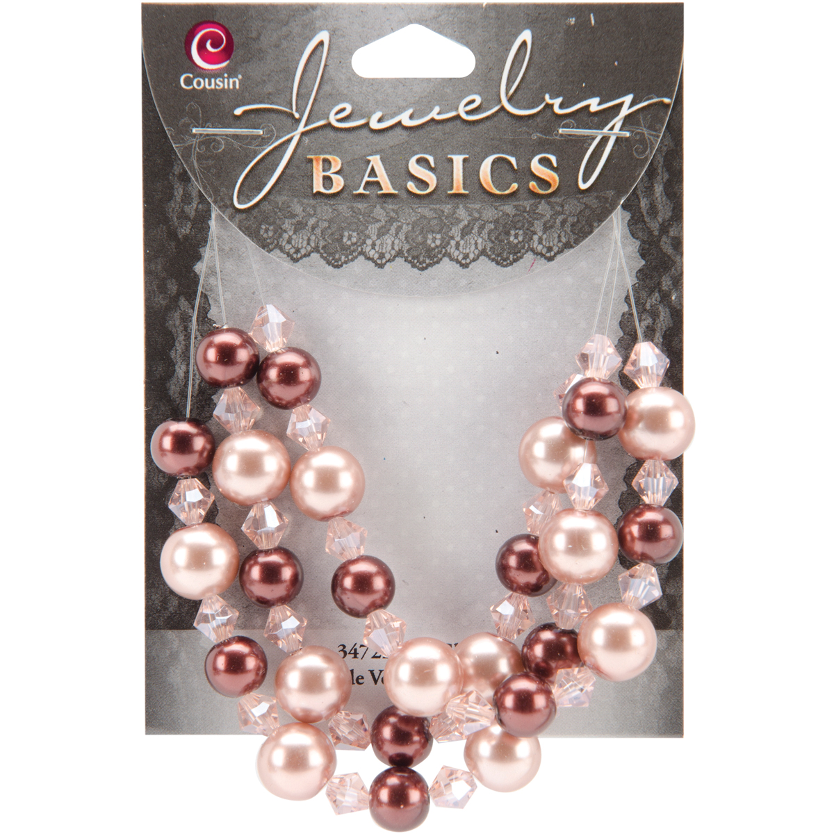 Jewelry Basics Pearl & Crystal Bead Mix 8mm & 10mm 51/Pkg Brown & Peach Round