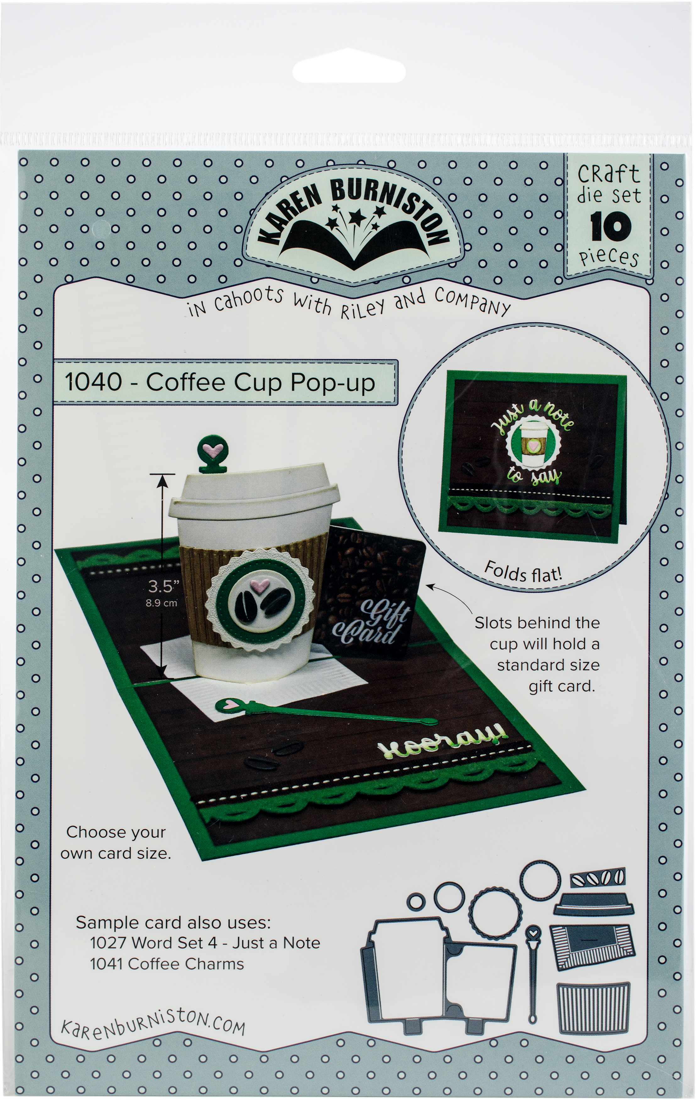 Karen Burniston dies will give an added touch to any paper project and are compatible with most die-cutting machines. This package contains Coffee Cup Pop-Up: a set of ten metal dies measuring between .625x.625 inches and 4.125x5.25 inches. WARNING: Choking Hazard. Not suitable for children under 3 years. Imported.
