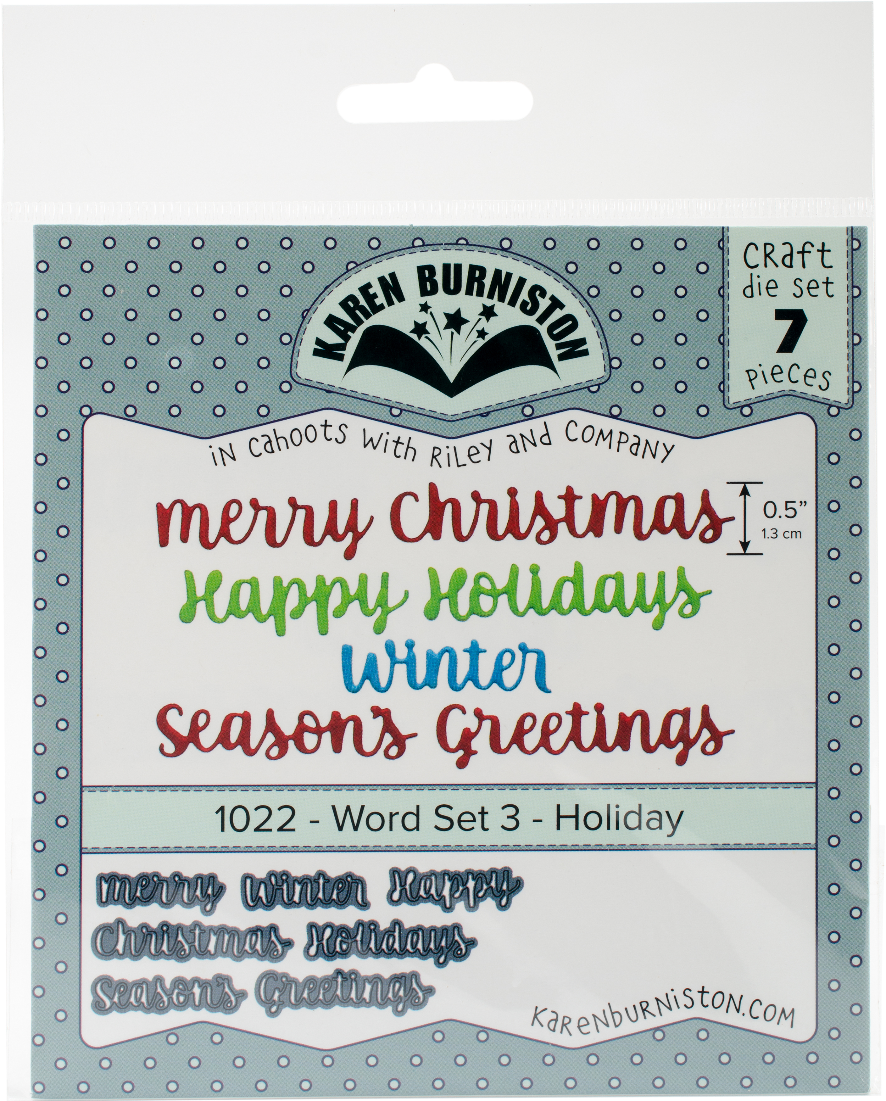 These wafer-thin metal crafting dies are compatible with most major die cutting machines. Packed with value, these innovative, cutting edge die sets will take your paper crafting to new heights. This package contains Word Set 3-Holiday: a set of seven dies measuring between 1.75x.5 inches and 2.75x.5 inches. WARNING: Choking Hazard. Not suitable for children under 3 years. Imported.