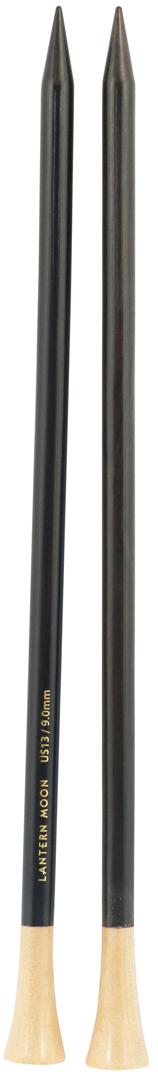 These single point needles are handcrafted using Ebony, one of the world's most expensive wood. The liquid silk finish ensures your knitting will flow with ease. Expertly honed needle tips work well with every yarn to help you create your very best work. The smooth glide sensation of Lantern Moon's needles will add to you enjoyment of knitting. This package contains two 14 inch long knitting needles size 13 (9.0mm). Available in a variety of sizes. Each sold separately. Imported.