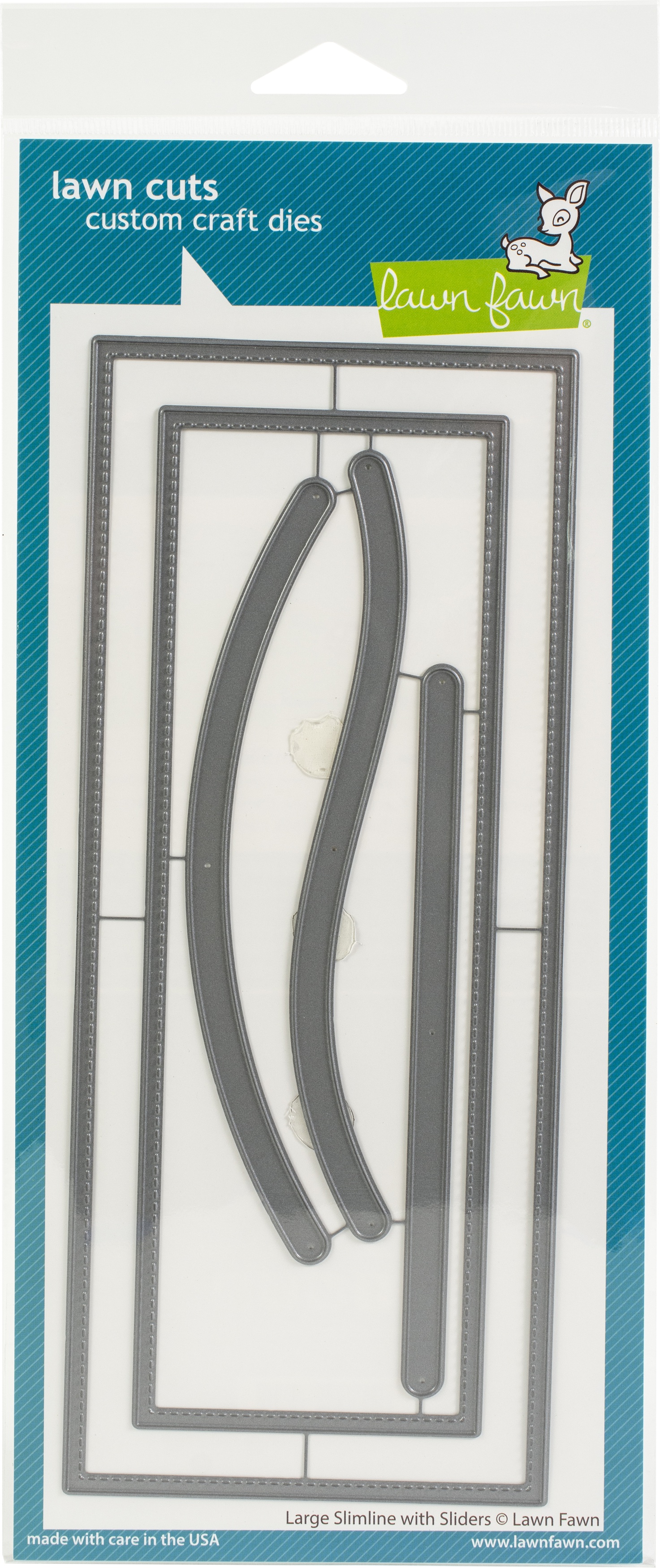 Lawn Fawn custom craft dies are made of 100% high-quality steel, compatible with most die-cutting machines, and will inspire you to create cute crafts! This package contains Large Slimline With Sliders: five dies measuring between .25x5.25 inches and 3.5x8.5 inches. WARNING: Choking Hazard- small parts. Not for children under 3 years. Made in USA.