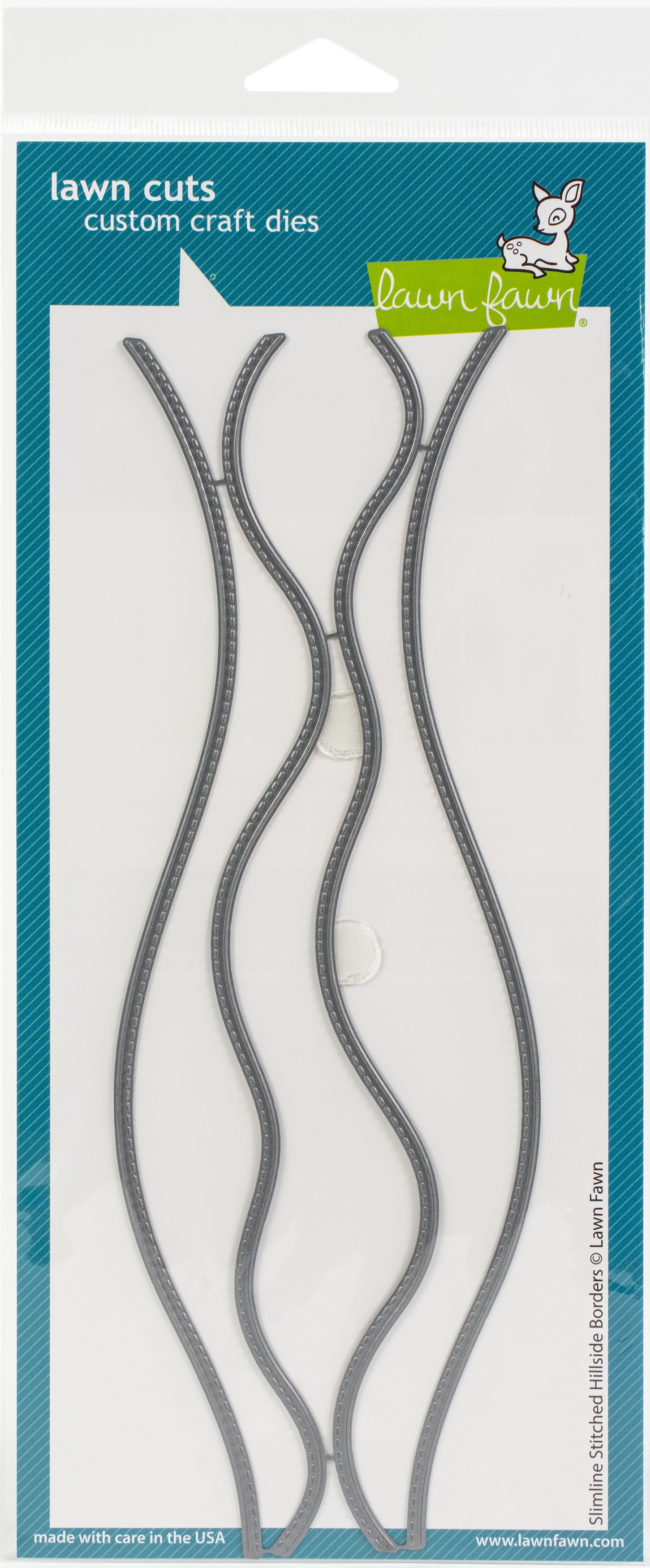 Lawn Fawn custom craft dies are made of 100% high-quality steel, compatible with most die-cutting machines, and will inspire you to create cute crafts! This package contains Slimline Stitched Hillside Borders: four dies measuring between .75x9 inches and .875x9 inches. WARNING: Choking Hazard- small parts. Not for children under 3 years. Made in USA.