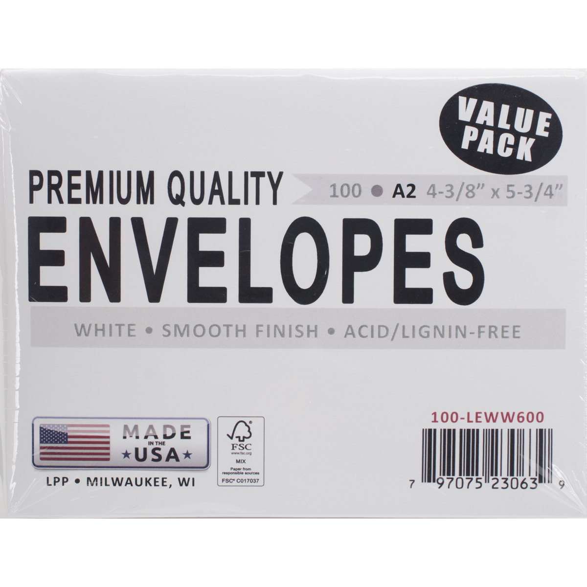 LEADER PAPER PRODUCTS-A2 Envelopes include 100 envelopes in each package. Color: White. Size: 4-3/8 x 5-3/4.