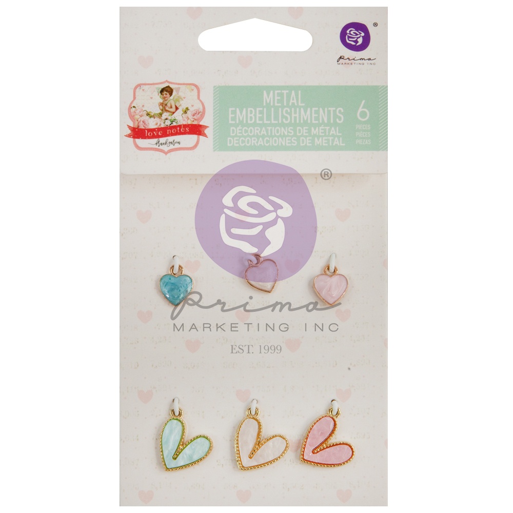 Create beautiful finished projects with these charms from the Love Notes Collection by Frank Garcia. Featuring beautiful enamel finishes, these metal charms can be added to albums, cards, tags and more for a finished result. Includes 6 pieces. Imported.