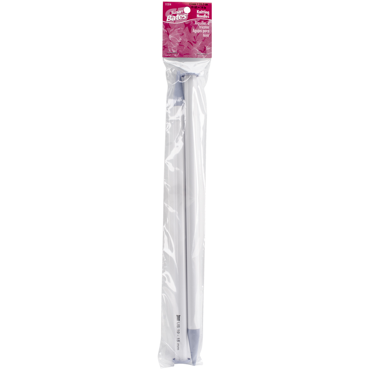 SUSAN BATES-Luxite Single Point Knitting Needles. Susan Bates Luxite needles offer a warm, lightweight and inexpensive alternative to aluminum. Luxite is a specially formulated plastic material that is very durable. Each size is color coded so you can find the size you need at a glance. Great when you want to double or triple strand your favorite yarn to create afghans, bulky sweaters and scarves that are finished in a snap. These 14in knitting needles pairs are available in US sizes 17 (12.5mm), 19 (15mm), 35 (19mm) and 50 (25mm): each sold separately. Imported.