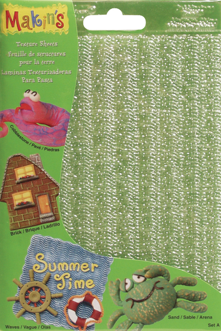 MAKIN'S-Clay Texture Sheet Sets. Makin's plastic clay texture sets are full of fun, creative and easy to use ways to create the perfectly and realistically textured clay. Each set contains four 6-1/4x4-1/2in textures. Texture set A: sand, waves, cobblestone and brick. Texture set B: stripe, checks, screen and dot. Texture set C: honeycomb, weave, eyelet and lace. Texture set D: wood-grain, scale, stars and snowflakes. Texture set E: curly fur, sweater, diamond and curly beard. Each set is sold separately. Imported.