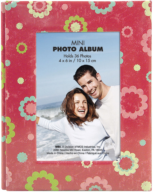 MBI-Mini Photo Album: 4x6 inches. Display your favorite photos in style with these cute and economical brag book style photo albums. Each album features a coated paper cover with 4-1/2x2-1/2 inch window on the front and holds thirty-six 4x6 inch photos. Available in a variety of patterns: each sold separately. Imported.