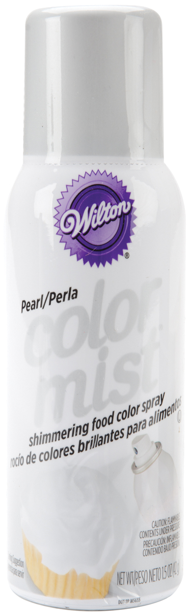 WILTON-Metallic Color Mist Food Spray. The same great Color Mist spray you love now in metallic finish! This easy-to-use spray gives decorators the versatility and dazzling effects of an airbrush in a convenient can! Create a rainbow of excitement for so many desserts. Use it to transform a plain iced cake with sensational color or add splashes of holiday color to iced cookies and cupcakes. Great for party desserts: highlighting whipped topping or ice cream with color. No mess, taste-free formula