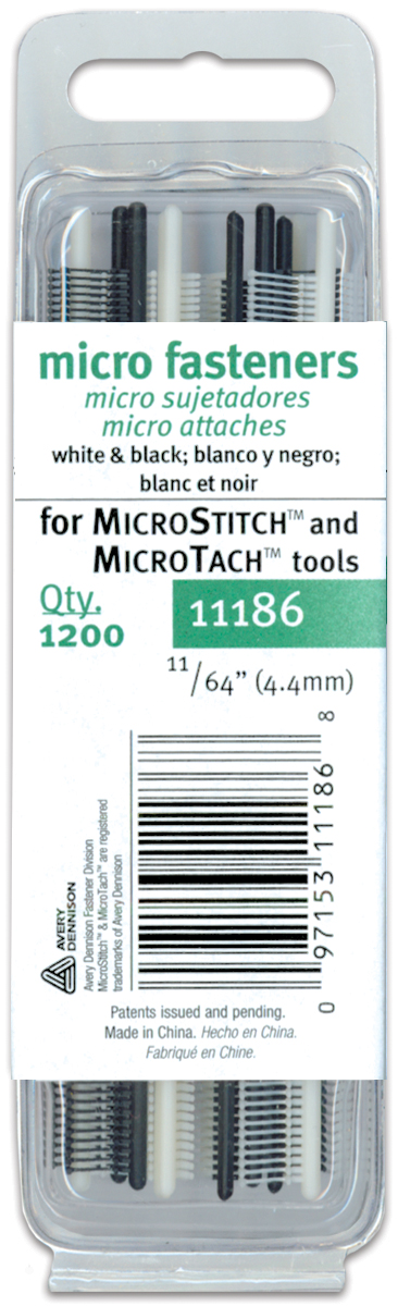 AVERY DENNISON CORPORATION-Micro Stitch Fastener Refills 4.4mm White/ Black is for use with Micro Stitch and Micro Tach tools. Includes 1200 refills!