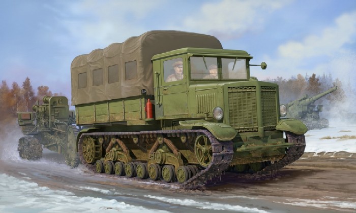 Development of the tractor started in 1935 Kharkov, and in 1937 a prototype was demonstrated in the Kremlin. The machine produced a strong impression and was approved. The tractor demonstrated excellent results, towing the largest artillery systems and all types of tanks, including the T-35 with ease. Late in 1939 the manufacturing of the "Voroshilovets" started, culminating in 1123 vehicles built. During the war the tractor was efficiently used at all fronts for heavy transport duty. « less
