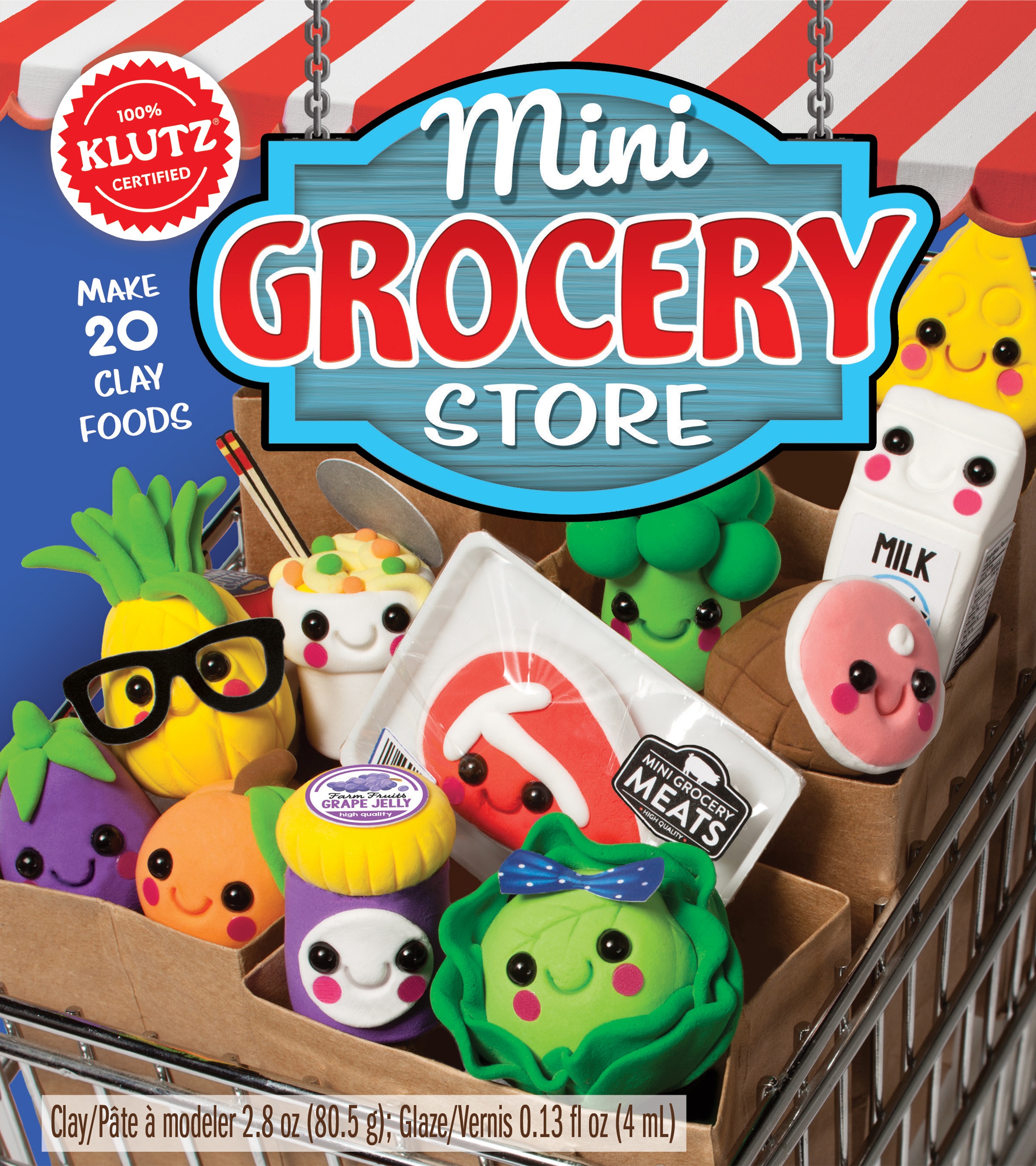 Make a super cute supermarket! Create more than 20 cute clay characters from every aisle of the grocery store: meat, produce, frozen food, and canned goods. Then make a papercraft shopping basket to tote them around. Crystal-clear instructions show what clay measurements you need and custom foam shapes make challenging projects easier-just wrap the clay around them! Sprinkled throughout are plenty of ideas to customize your grocery haul with cute food labels and packaging. Don't forget your shopping list! This 8x9x1.5 inch package contains one 52-apge book of instructions and inspiration, air-dry clay in eight colors, 42 bead eyes, 42 sequins cheeks, glaze, clay roller and four brads. Conforms to ASTM D 4236. Recommended for ages 6 and up. Imported.