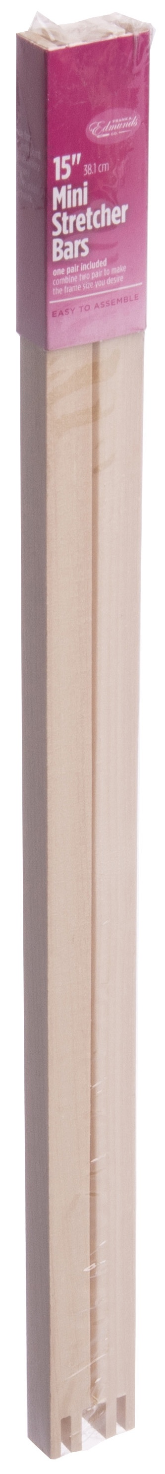 FRANK A EDMUNDS-These 2 mini stretcher bars are for needle projects and measure 15 long, 1/2 wide, and 1/2 in depth. Stretcher bars eliminate movement and keep work taut and clean. Combine any 2 sizes to form the exact size frame desired. Wood comes plain.