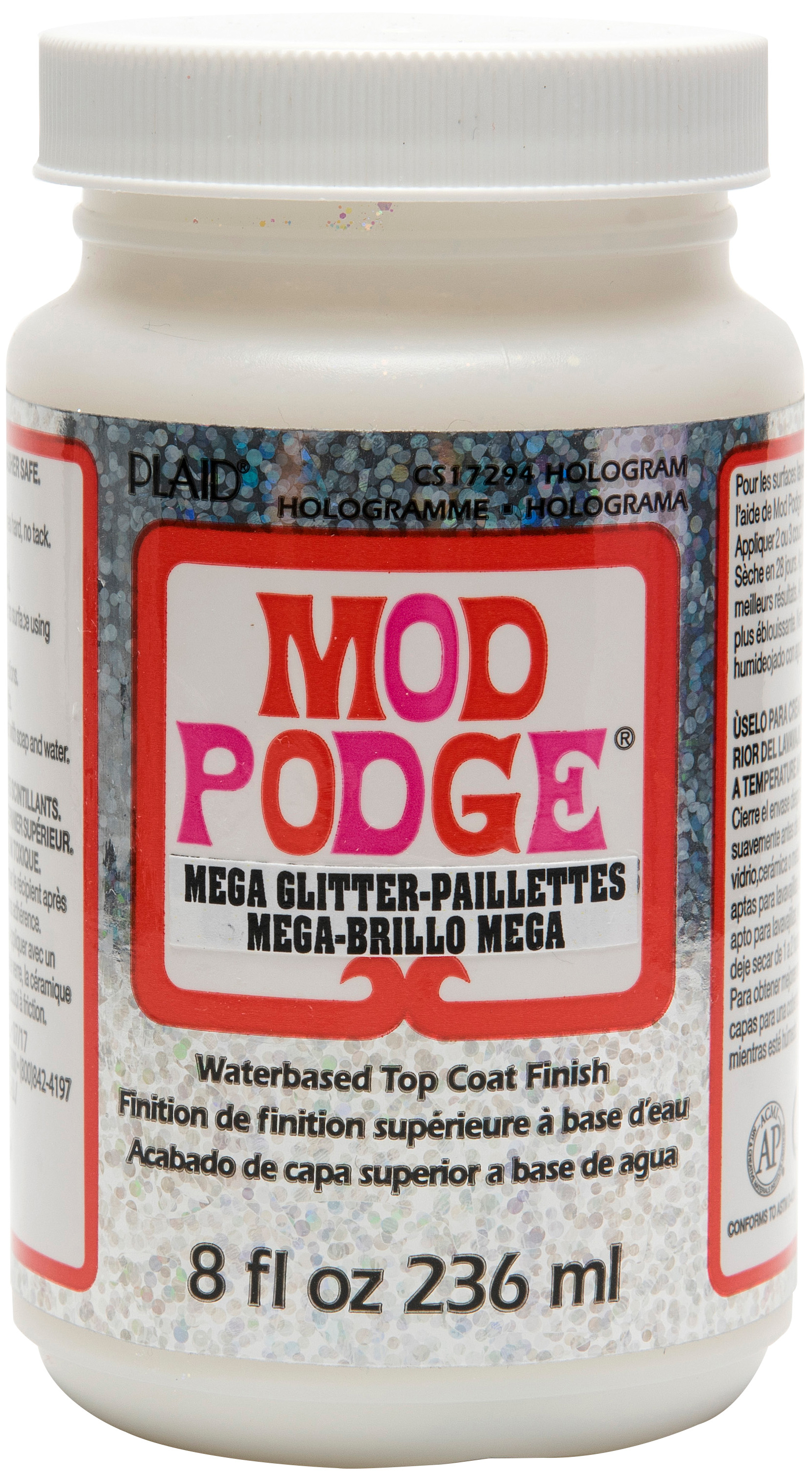 Use Mod Podge Mega Glitter topcoat to enhance your projects with an intense glitter finish with a shimmering, lustrous shine. Layer multiple coats to create even more sparkle. Works well on jewelry, fashion accessories, decor projects and more. This package contains 8oz of Mode Podge glitter. Non-toxic. Conforms to ASTM D 4236. Made in USA.