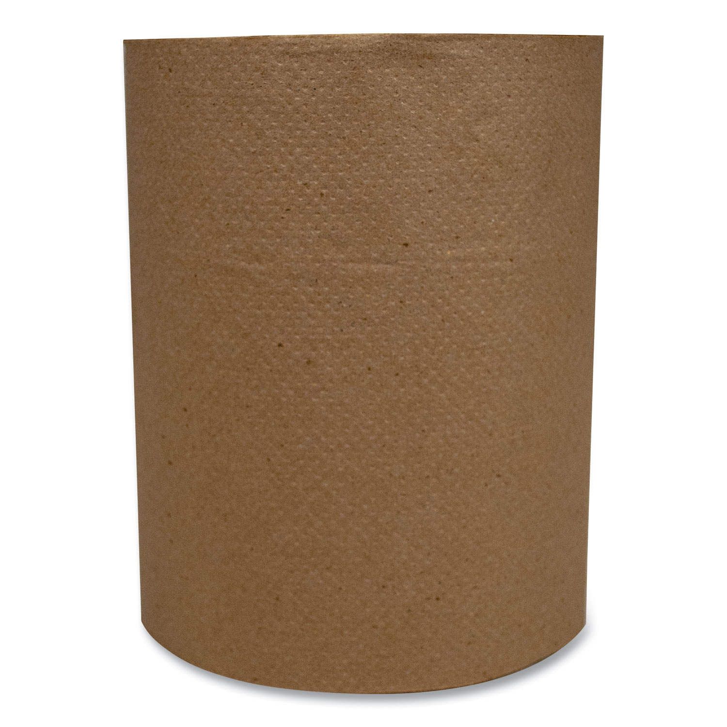 Budget-friendly towels may be used for hand drying or general purpose cleaning. Smooth, non-abrasive paper is safe to use on most surfaces. Stays considerably durable when wet. Towel/Wipe Type: Hardwound Roll Towel; Application: General Purpose; Hand Washing; Washrooms; Material(s): Kraft; Number of Plies: 1.