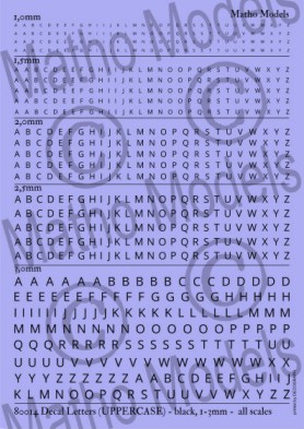 Multi-Scale Black Upper Case 1-3mm Letters Decal