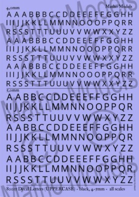 Multi-Scale Black Upper Case 4-5mm Letters Decal