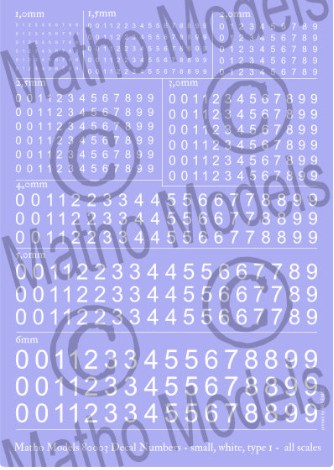 Multi-Scale White Small Type 1 Numbers Decal