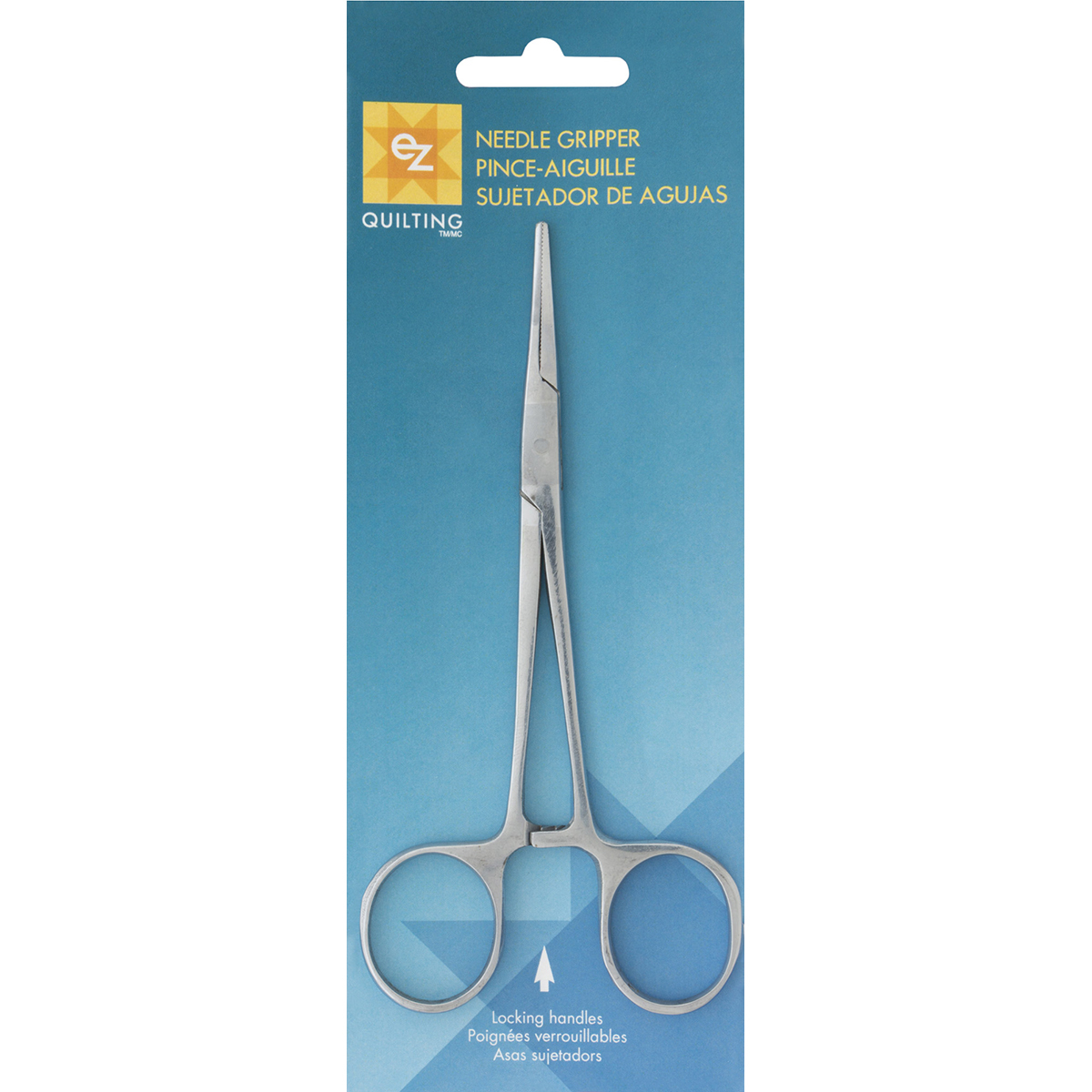 WRIGHTS-Needle Gripper. Idea for tough hand sewing and for changing serger needles. It has a locking handle and gripper teeth. This package contains one 6 inch tall metal needle gripper. Made in USA.