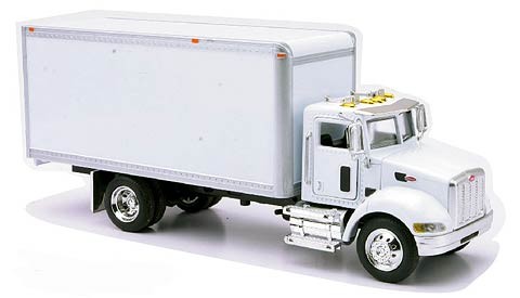 This is a 1/43 scale model. Peterbilt 335 box utility truck - cab and trailer are all White, cab is die-cast metal, balance is high impact plastic dimensions 20cm L x 5.7cm W x 6.4cm H. Ages 5+ - -