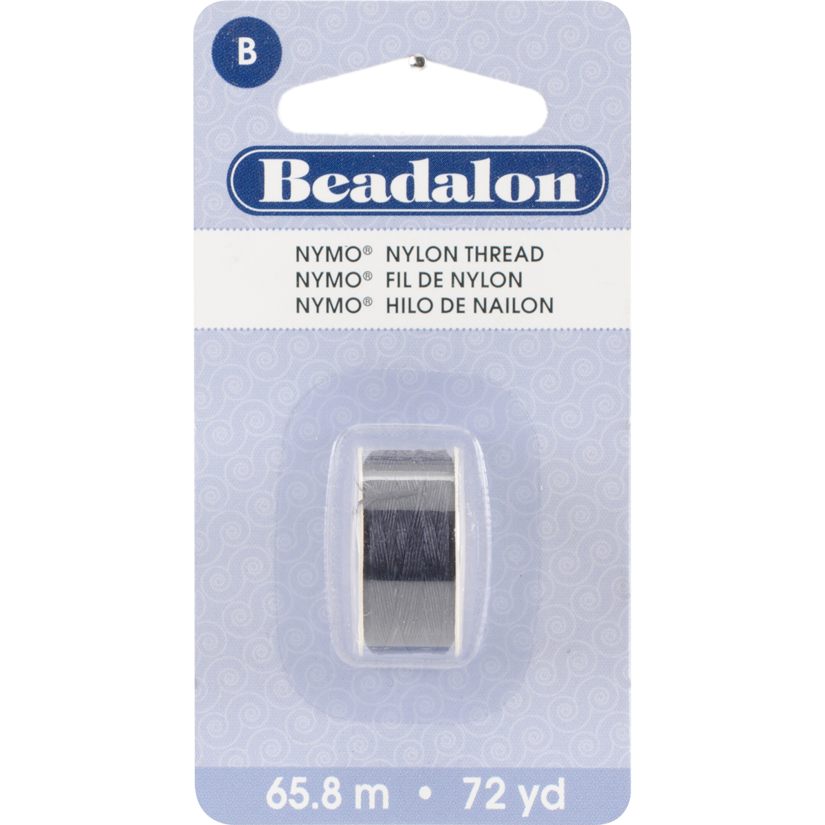BEADALON-Nymo Thread. Industrial nylon Nymo thread is an excellent choice for stringing small beads. Easy to thread, does not twist, great for stringing craft projects and creating wearable beaded projects. This package contains 72 yards of size B black thread. Made in USA.
