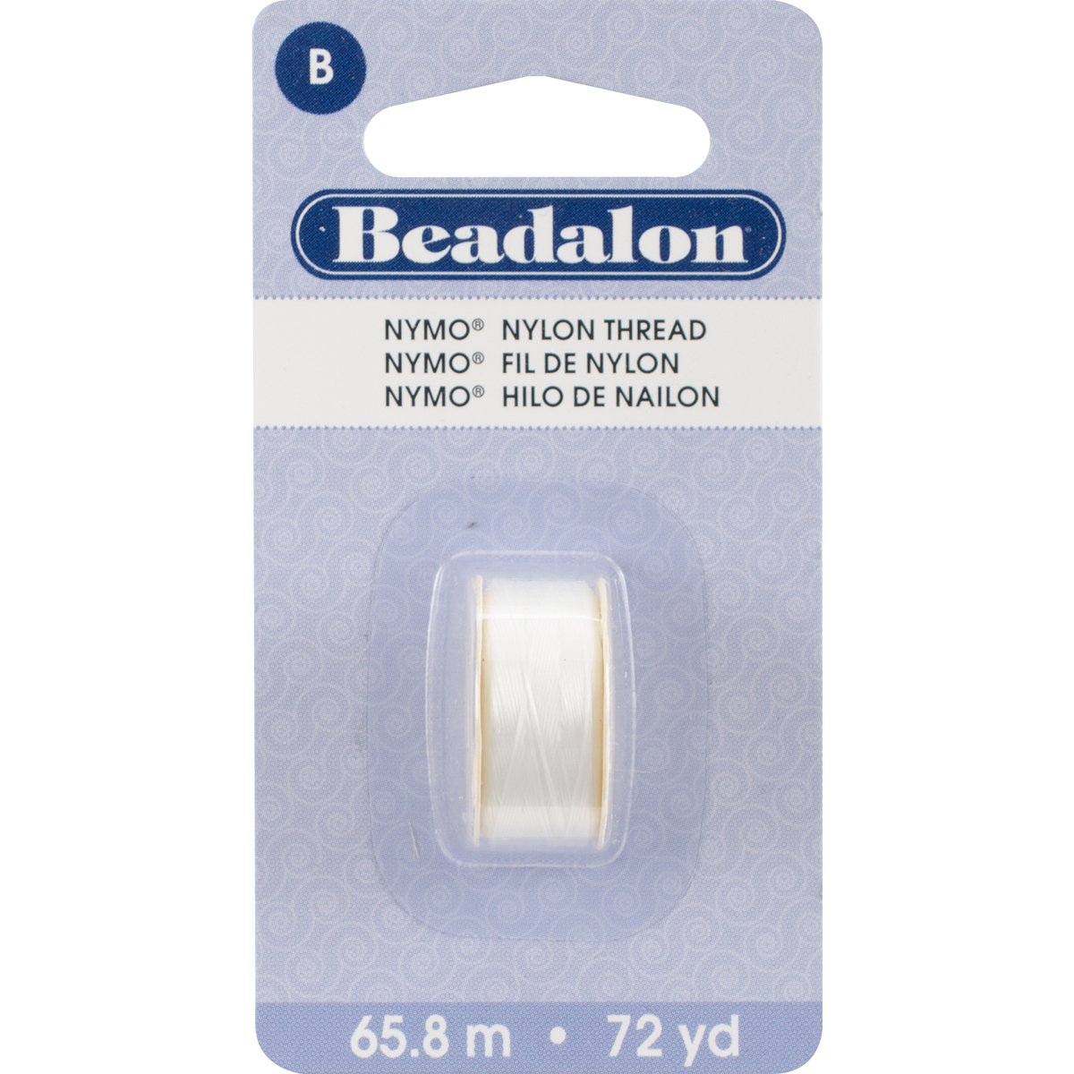 BEADALON-Nymo Thread. Industrial nylon Nymo thread is an excellent choice for stringing small beads. Easy to thread, does not twist, great for stringing craft projects and creating wearable beaded projects. This package contains 72 yards of size B white thread. Made in USA.