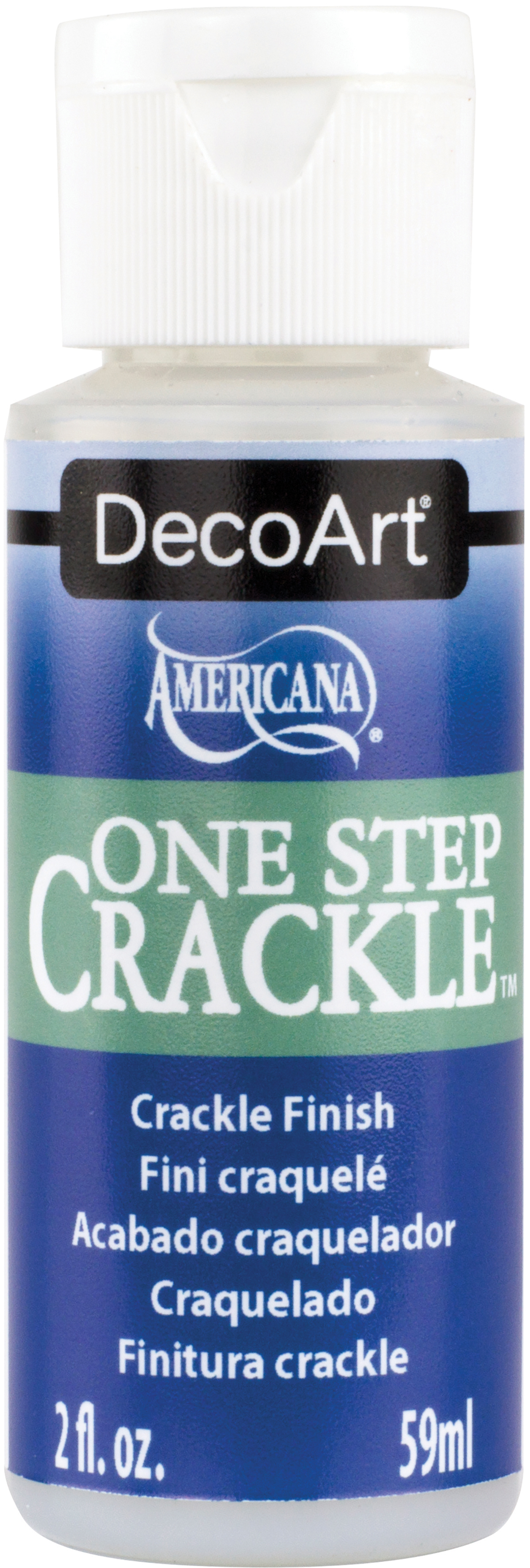 DECOART-One Step Crackle. Unlike other crackle products, this one gets painted over the top of other paints allowing you to crackle a surface without having to repaint it. Especially nice when you love the color but can not reproduce it! This package contains one2oz/59ml bottle of crackle medium. Contents conform to ASTM D4236. Made in USA.