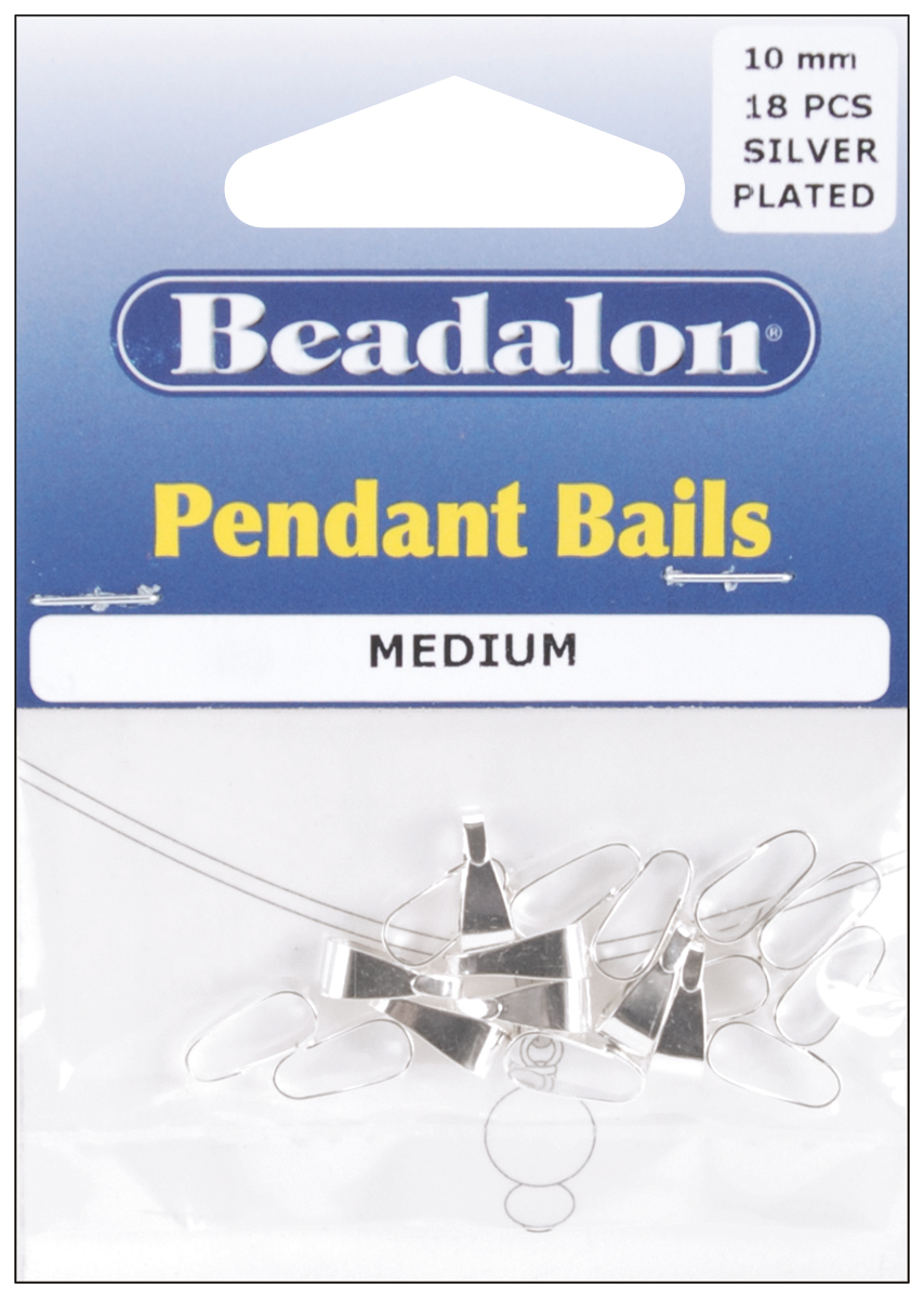 BEADALON-Bails. This package contains eighteen medium (10mm) silver plated pendant bails. Nickel Free. Imported.